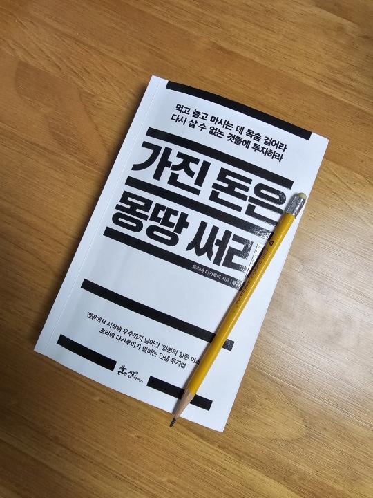 고명환작가님의 도서 추천을 받고 읽게 된 '가진 돈은 몽땅 써라' 제목부터가 도발적인 듯합니다. 처음엔 정말 이 사람이 미쳤나 싶을 정도의 제목이 아닌가 했지만 실상 책을 펼쳐 보니 그런 이야기가 역시나 아니었습니다. 먹고 놀고 마시는 데 목숨을 걸지만 그것이 다시 살 수 없는 것들이어야 한다는 내용이었습니다. 저같이 저축이 제일 안전하다라고 배워 온 사람에게는 사실 쉬운 내용은 아니었습니다. 물론 책은 정말 가독성이 좋고 읽기 편했습니다. 책의 내용처럼 시대가 바뀌어 가고 있고 돈의 가치는 점점 떨어져 가고 있는 시대를 살고 있습니다. 단순히 저축만으로는 안전한 삶을 살 수 없는 시대를 살고 있습니다. 물론 내용 중에는 쉽게 고개가 끄덕여지지 않는 부분도 있었습니다. 하지만 한번 사는 인생 시도조차 하지 않는 것이 시도해 보고 실패하는 것보다 부끄럽다는 말에 고개가 숙여졌습니다. 저처럼 안전빵만을 추구하는 많은 분들에게 자신 있게 소개해 봅니다.