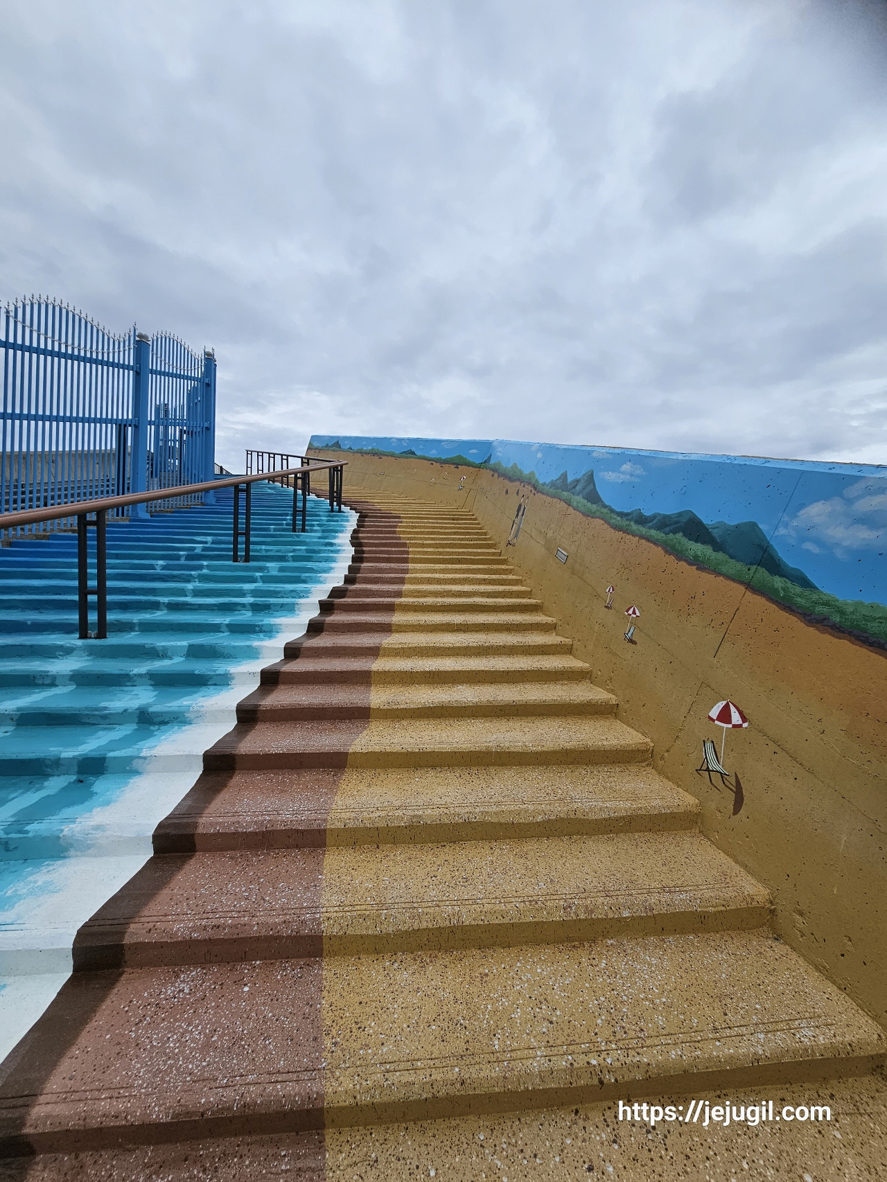 계단 오르막도 해변가를 연출한 듯 형형색색 칠이 되어 있다.