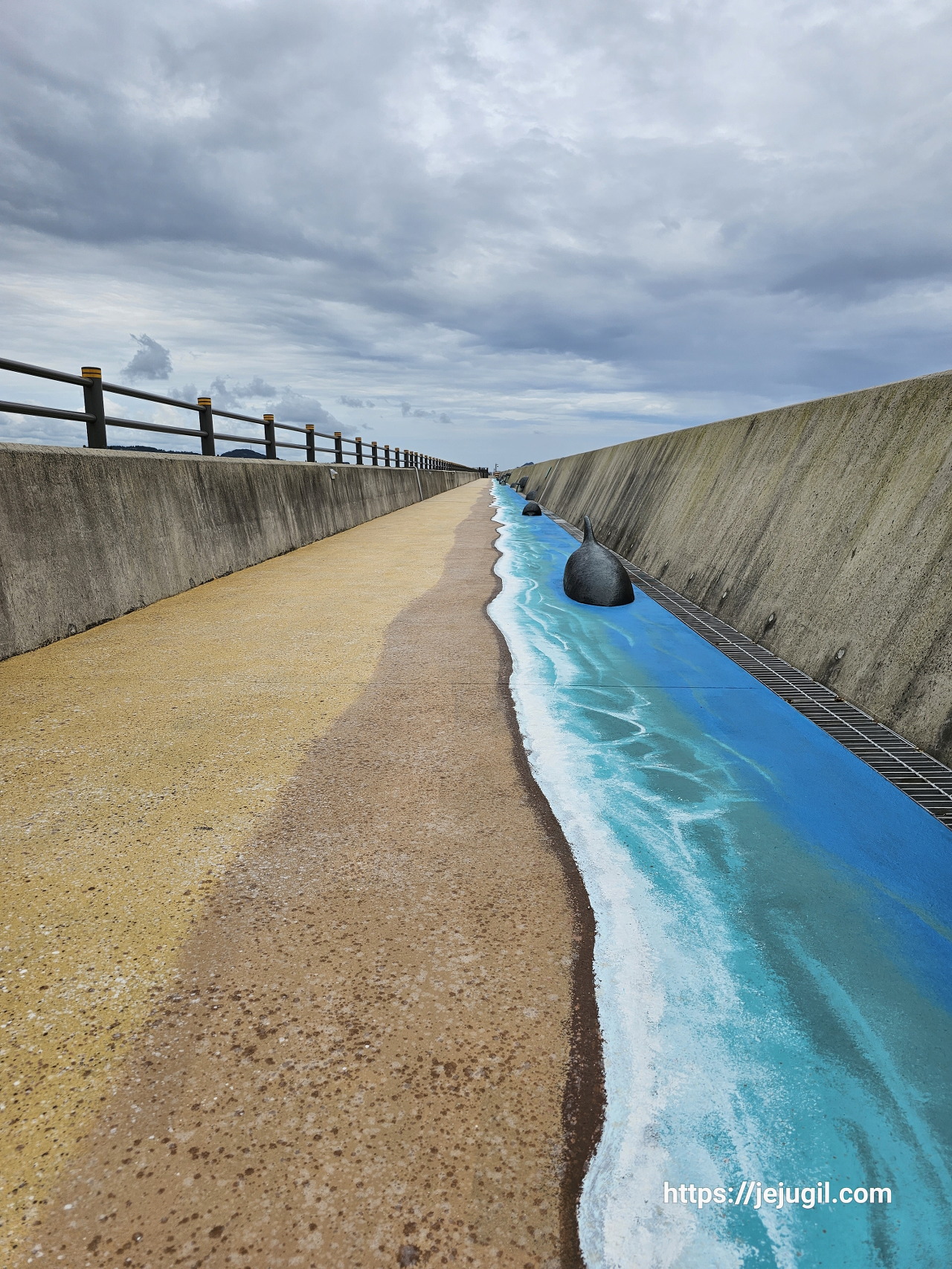 바다로 쭉 이어진 노을길에는 바위며 각종 해양생물들을 형상화 해 놓은 조형물들이 눈을 즐겁게 한다.