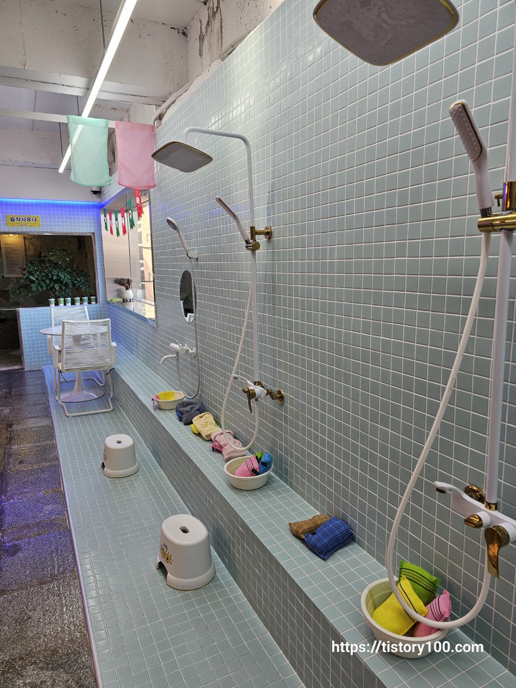 하지만 눈을 조금만 돌려보면 예전 목욕탕에서 보았던 세신실이며 자동 때밀이, 샤워기에 때밀이까지 영락없이 이곳이 목욕탕이었음을 또한 알게 해 줍니다.