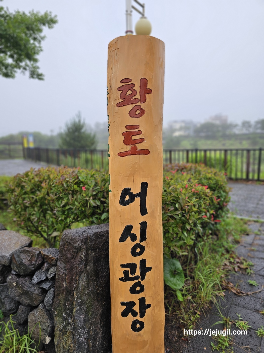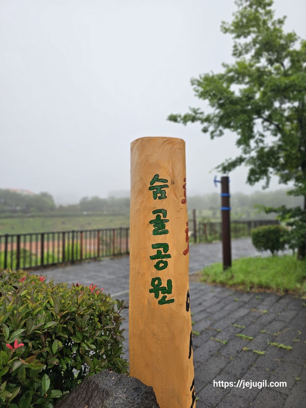 어싱광장을 품었다고 자랑이라도 하듯 황토를 잘 차려입은 숨골공원 기둥표지판