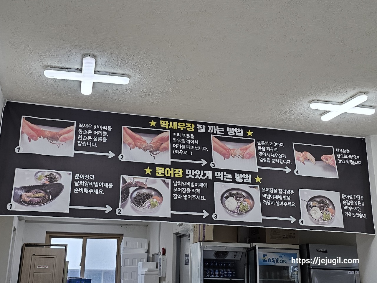 육지사람들에게는 생소한 딱새우장, 문어장, 그래서 이렇게 친절하게도 먹는 방법을 여기저기 만들어 두셨다. 배려와 센스짱