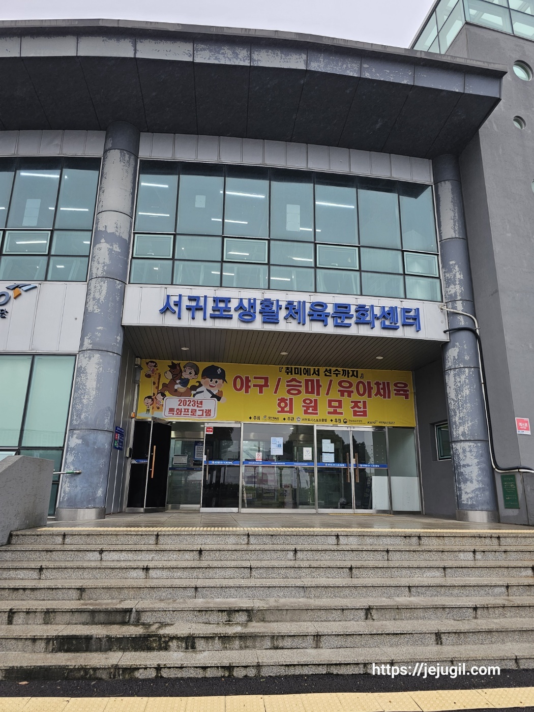 조금만 더 걸어가면 서귀포생활체육문화센터가 나오는데 테니스, 탁구, 요가, 헬스, 승마 등 다양한 문화체험을 할 수 있다. 도민이 아니더라도 주소지만 있으면 가능하고 특히 헬스는 하루 천원, 한달 이만원에 저렴하게 이용 해 볼 수 있다. 아직까지 사람들을 상대하는데 어려움이 있어 문의만 해 본 상태이다.