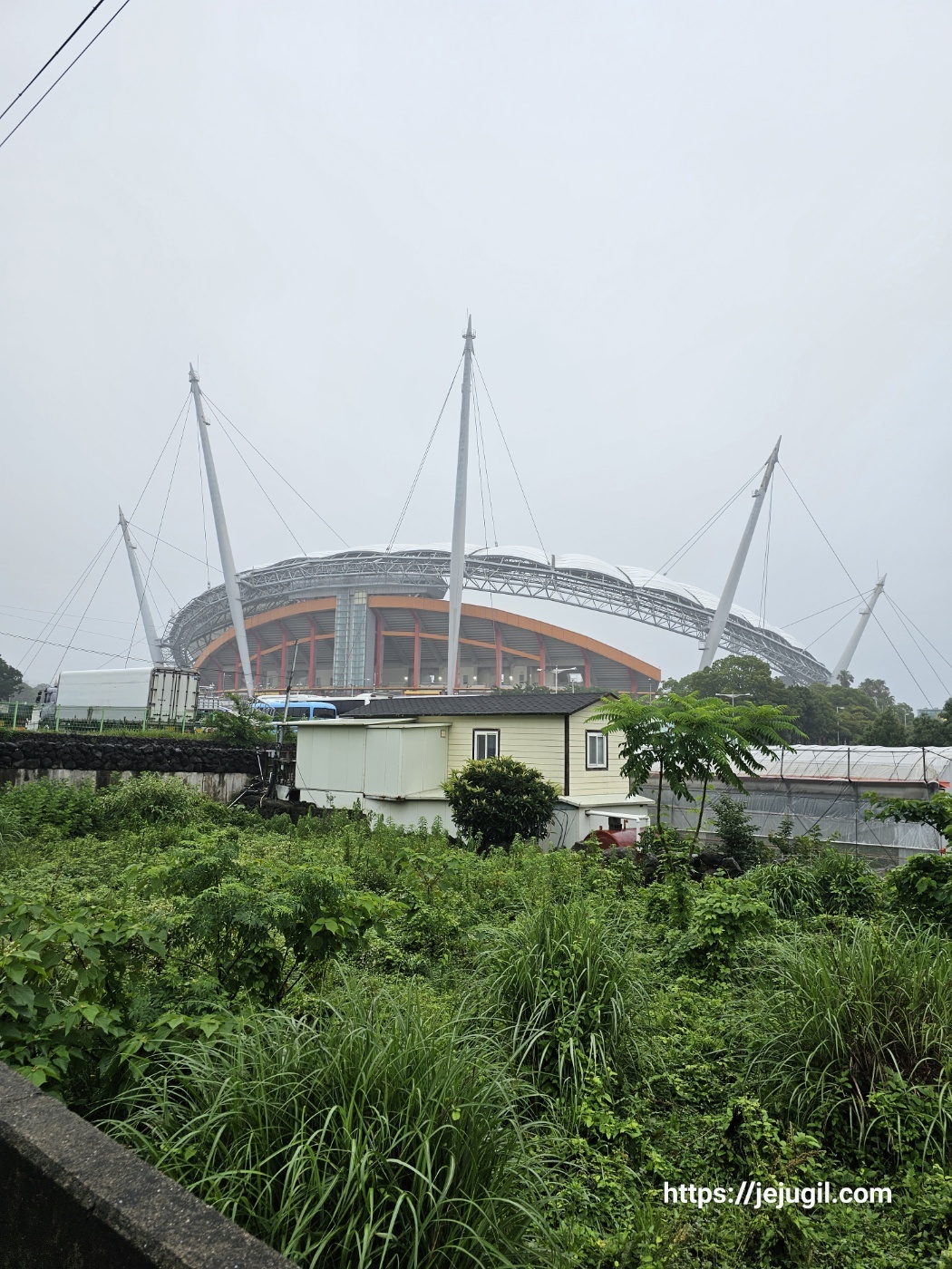 조금 더 걸어가면 보이는 '제주 월드컵경기장' 주말이 되면 함성 소리에 깜짝깜짝 놀라기도 하지만 제주도민들의 열정을 볼 수 있는 곳이다. 1층인지 지하인지 모르겠지만 작은 영화관도 자리잡고 있다.