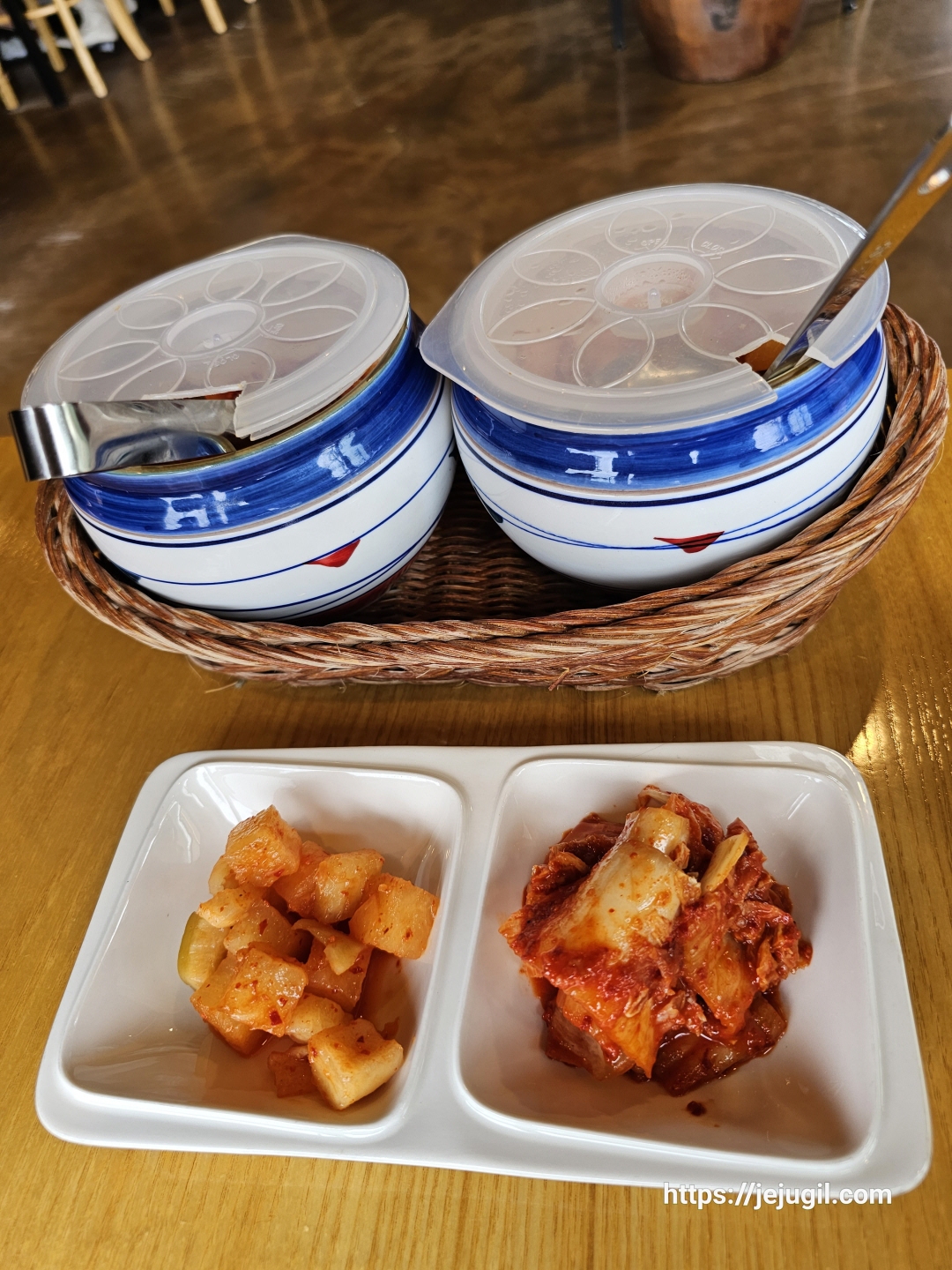 한 눈에 봐도 진득한 국에 맛깔나게 생기니 보말칼국수와 보말죽. 반찬은 김치와 깍두기 이외에 궁채나물이 추가되어 나왔다. 궁채나물이 아삭아삭하니 식감이 꽤 좋았다.