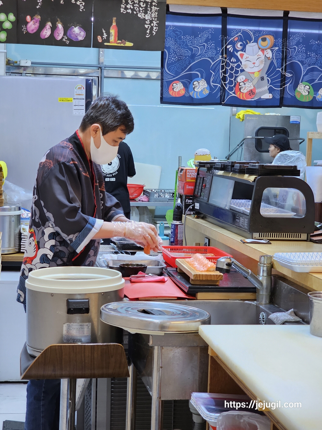 주문 후 바로 만들어지는 스시, 사장님과 직원들의 손길이 분주해 진다.