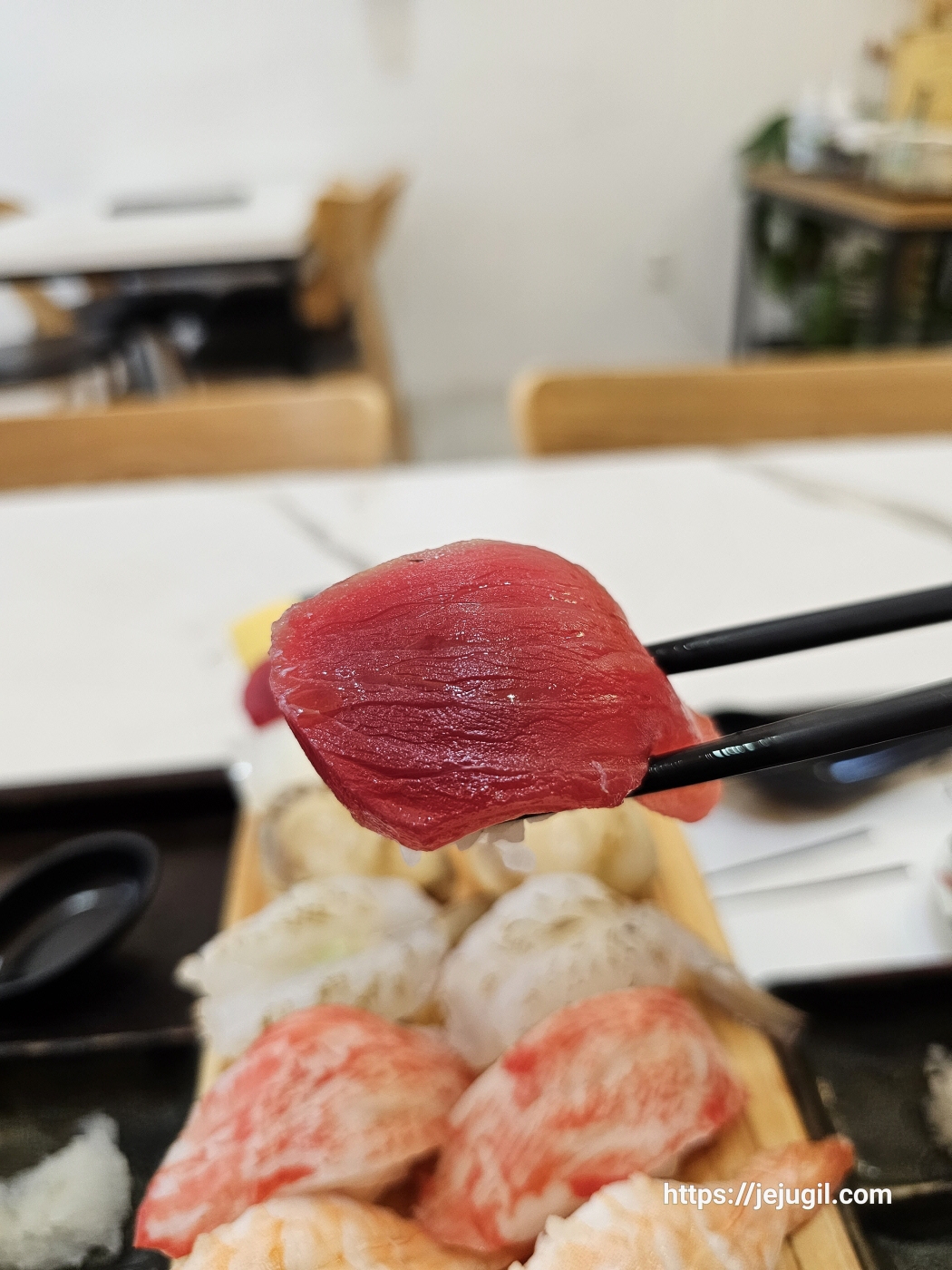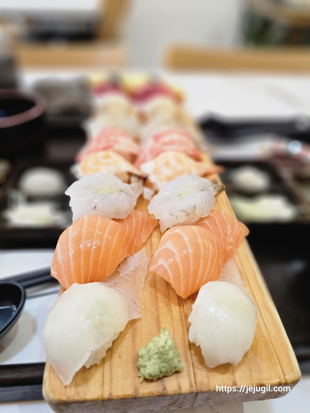 이렇게 봐도 맛있어 보이고 저렇게 봐도 맛있어 보인다. 특히 연어는 두툼해서 식감이 기가 막힌다. 거짓말 좀 보태서 넣자마자 입안에서 녹는다 녹아.