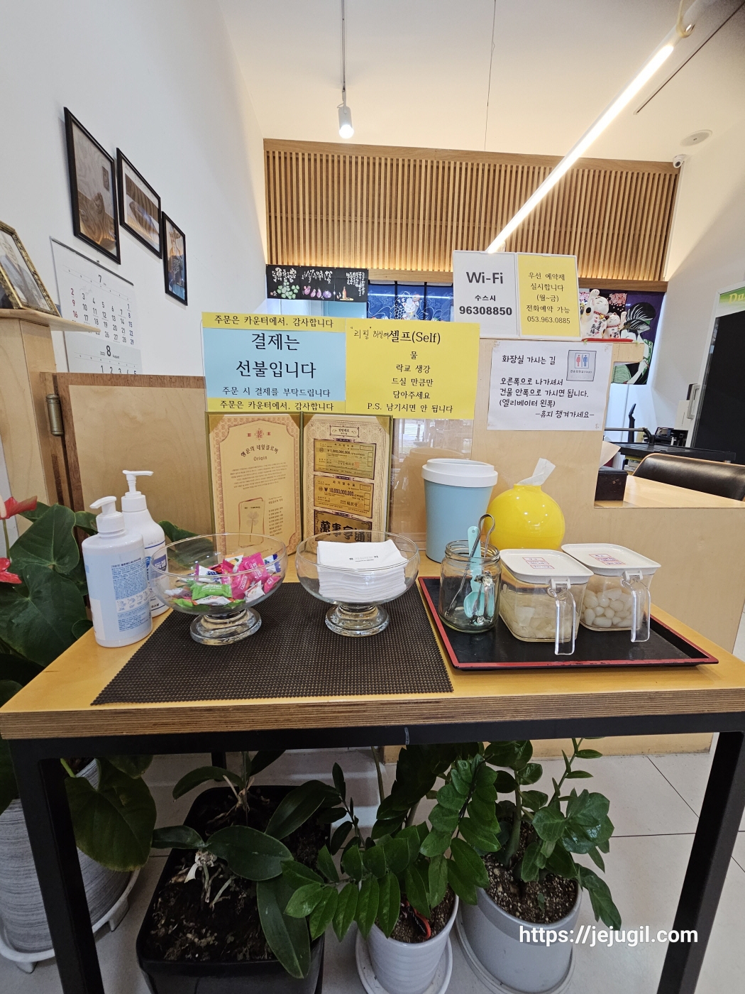공간이 넉넉하지 않기 때문에 월요일에서 금요일까지는 우선예약제를 실시한다. 특히나 점심시간에는 미리미리 예약을 하고 오는 게 좋다. 참 아쉽지만 뒤쪽에 주차타워는 사용이 불가능하고 12시에서 2시까지 도로변에 주차가 가능하다고 한다. 나같은 뚜벅이는 물론 예외지만 차를 가지고 오는 경우는 주차를 신경써야 할 것 같다. 생강초절임과 락교는 먹을 수 있는만큼 직접 추가로 가져올 수 있다.