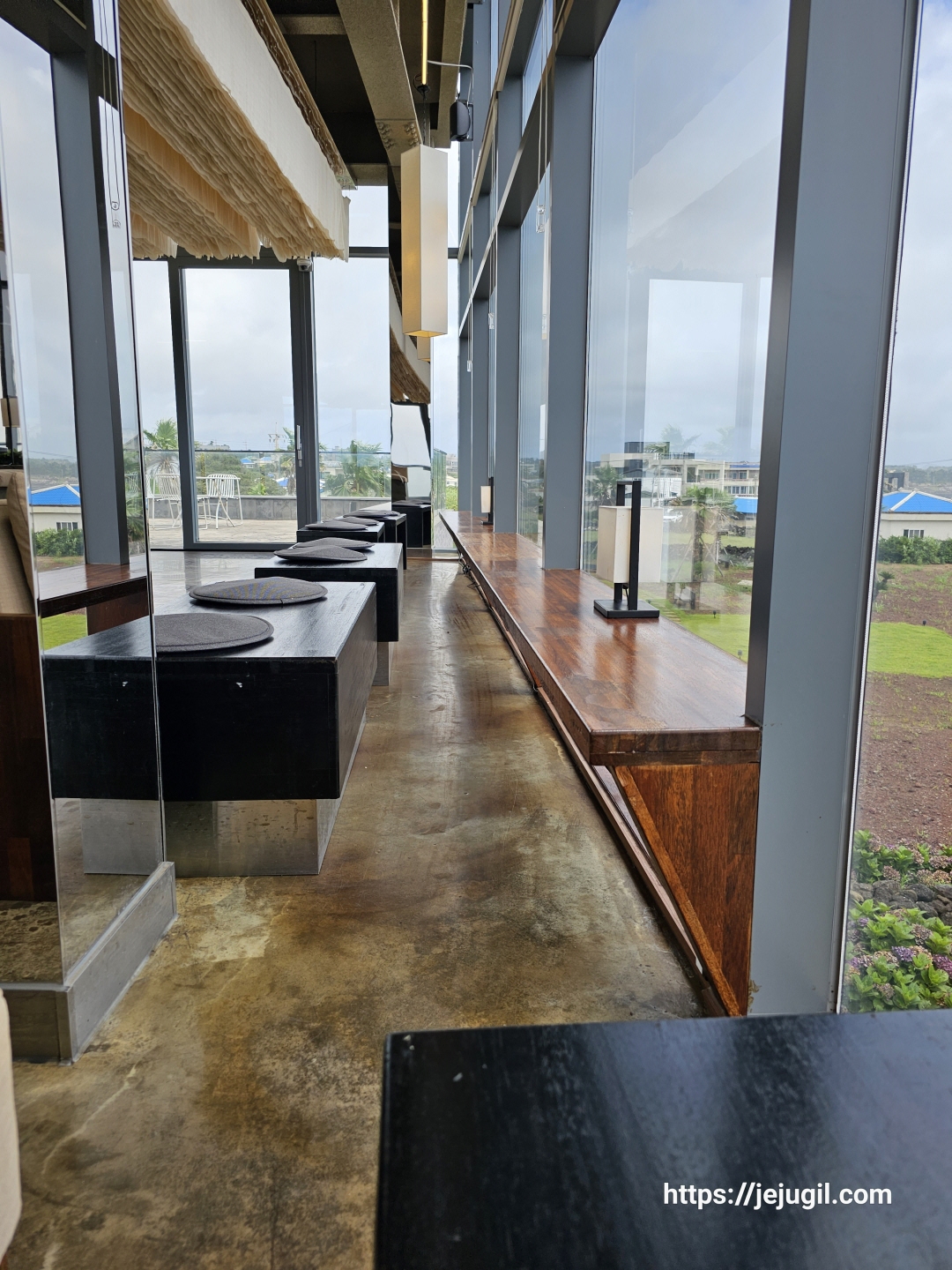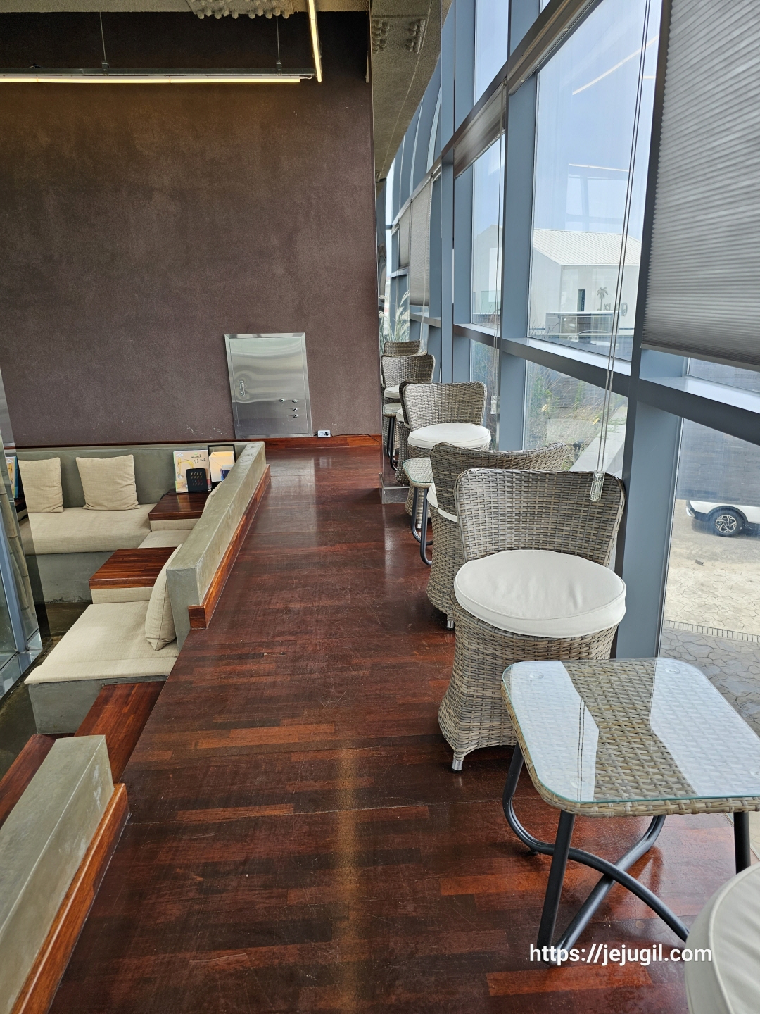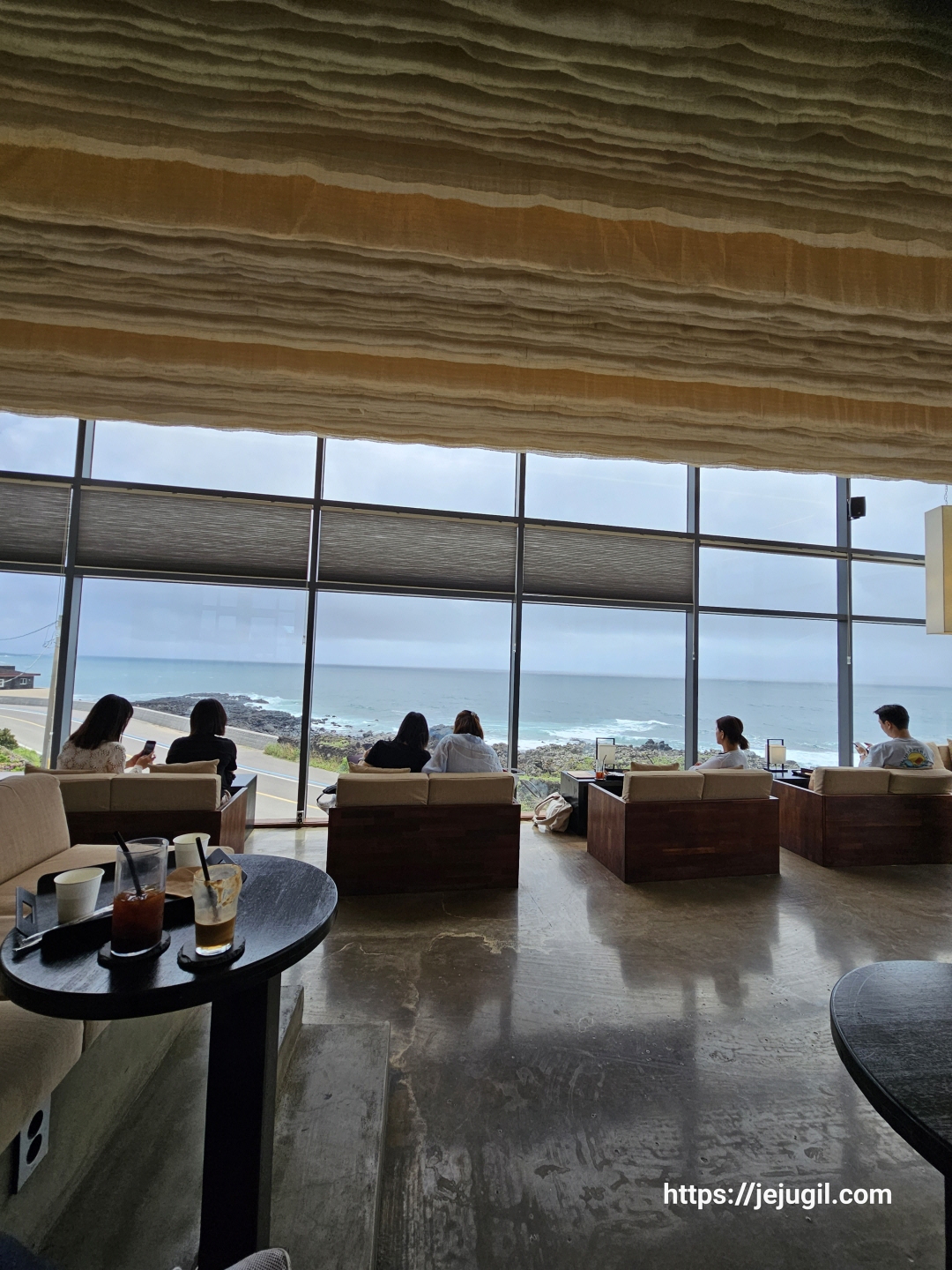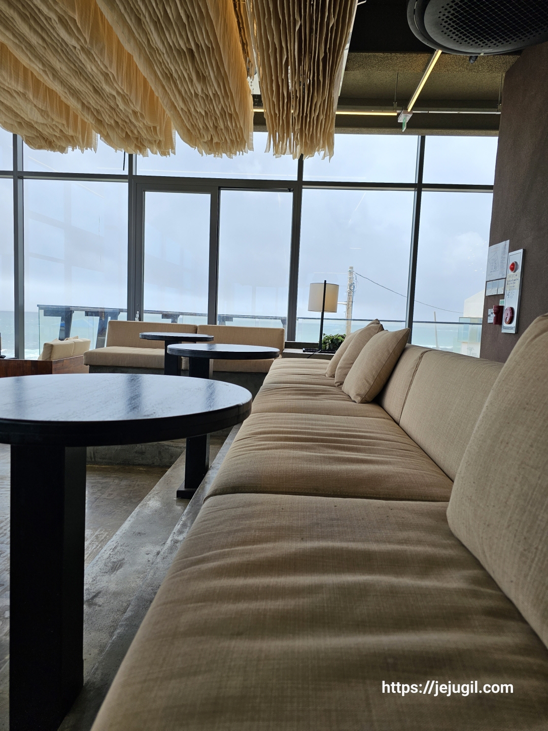 역시나 대부분 모시천으로 되어 있어서 어느 곳이나 뽀송뽀송한 착좌감을 주었다. 물론 햇볕만 아니라면 통창으로 바라보는 바다뷰쪽의 자리가 갑오브갑이다.