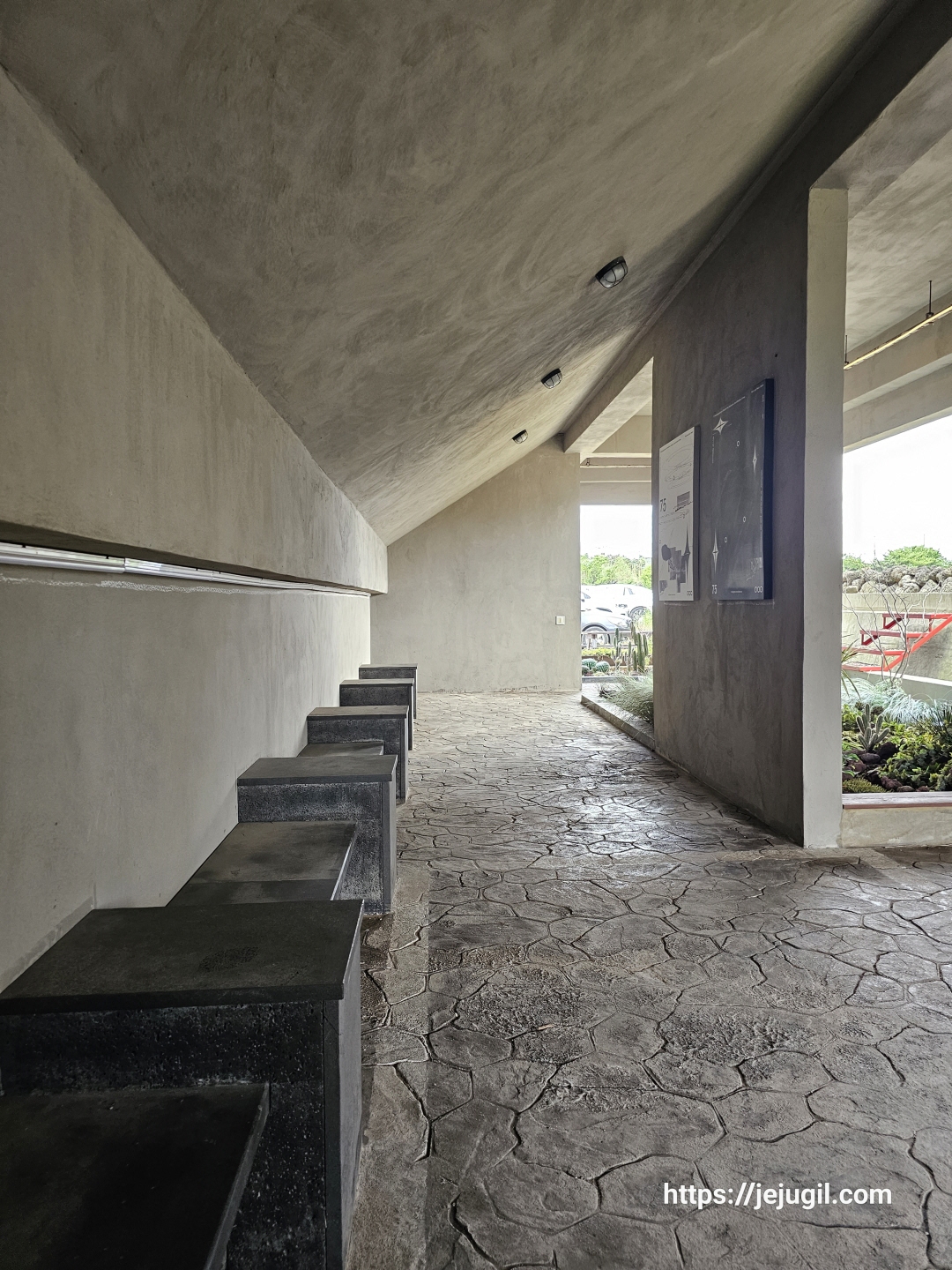 주차장 바로 옆에도 앉을 자리들이 마련되어 있다.