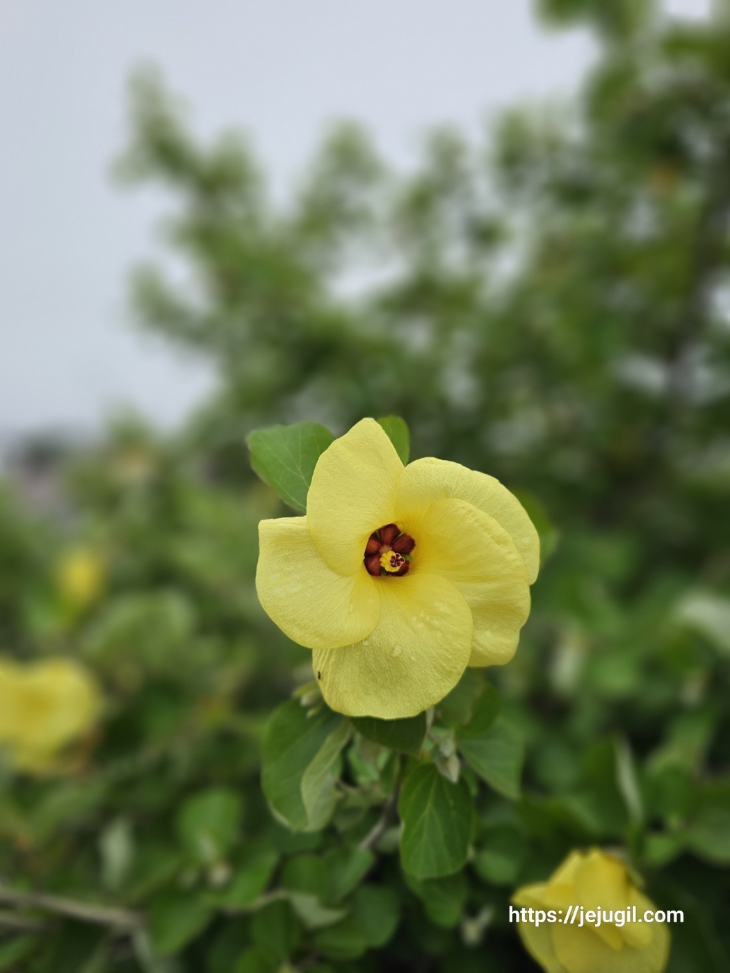 숙소에 도착해서 아저씨가 지나치면서 하신 말씀을 다시 떠올려 보았고 궁금한 건 못참는 성격이라 여기저기 검색을 해보았다. 노랑무궁화, 황근이라는 이름 말고도 바닷가에서 자란다고 갯아욱, 갯부용이라고도 불린다고 한다.또 맞는지는 정확하지 않지만 노랑무궁화지만 무궁화와는 다른 꽃이기도 하다고 알려져 있었다. 많이 자라면 5미터까지 자라기도 하고 제주에서는 6월에서 8월사이에 개화 한다고 되어 있다.