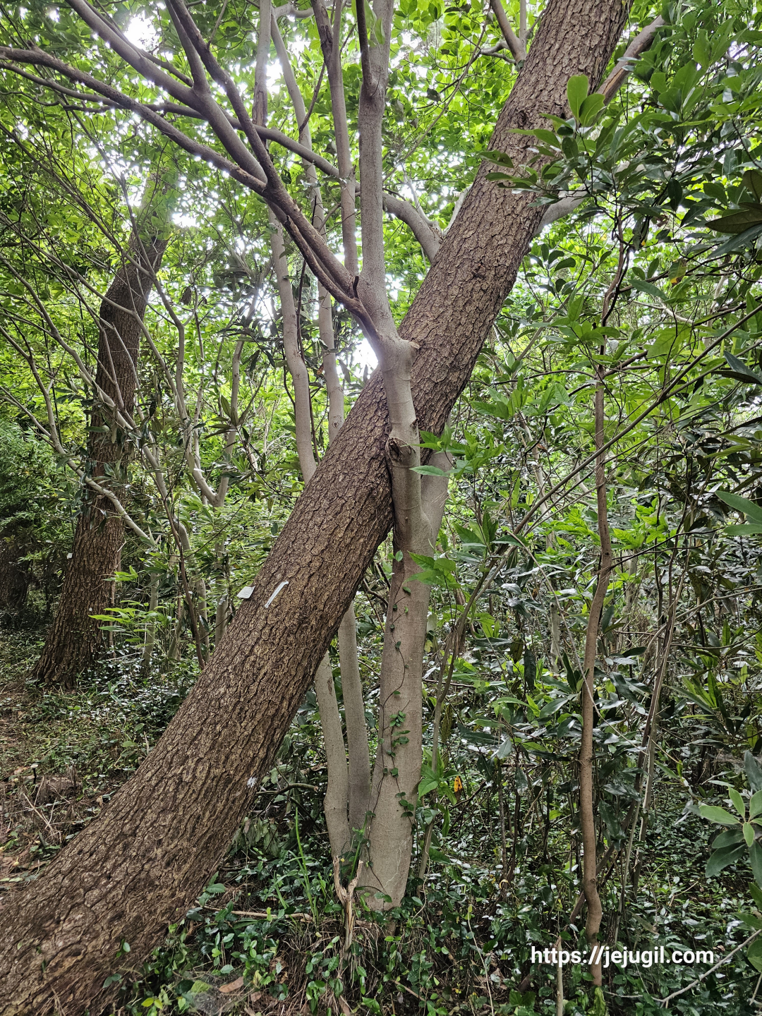 한참을 가다 다른 나무에 기대어 사는 나무가 있길래 신기해서 한 컷!
