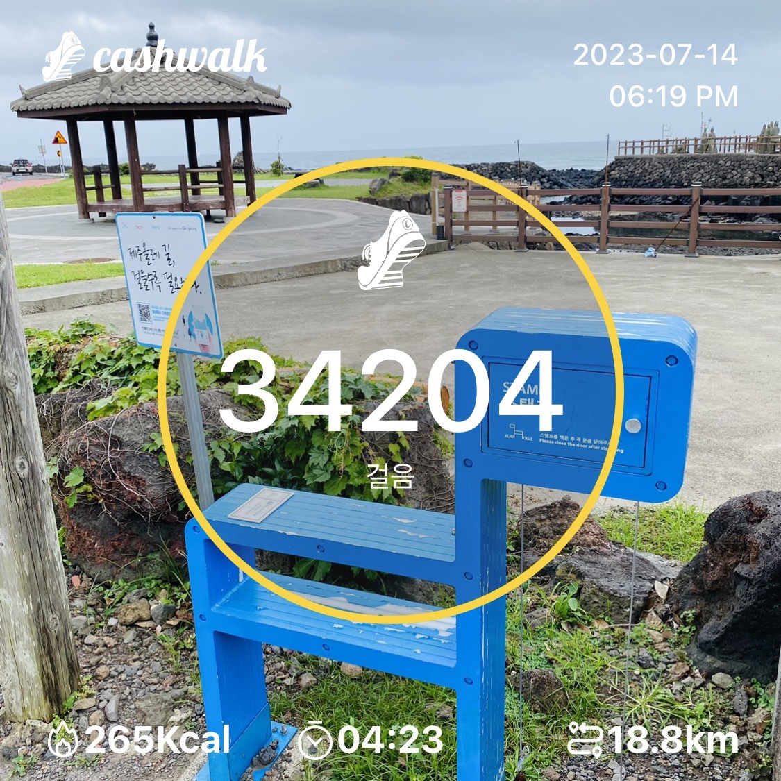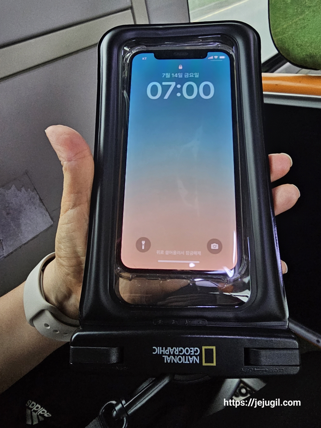 어제부터 일기예보에 비 소식이 있었기에 아예 스마트폰을 방수팩에 넣고 아침7시에 버스를 탔다. 법환초등학교에서 대략 1시간30분 가량을 지나서야 오늘의 출발지 광치기해변 올레에 도착할 수 있었다