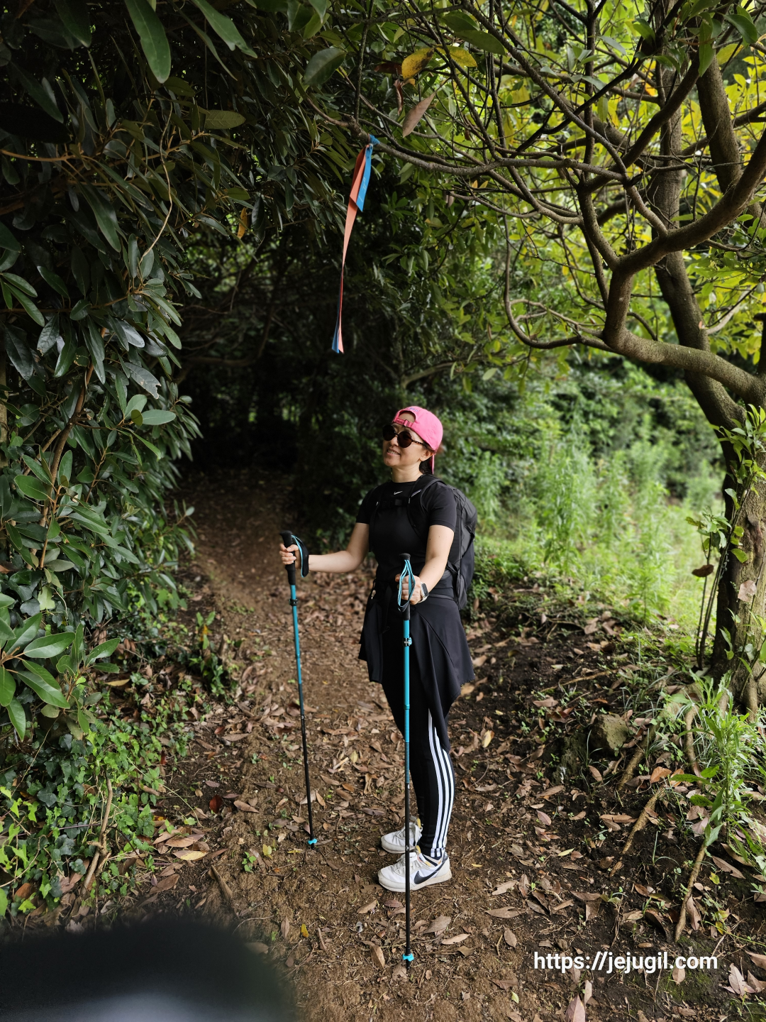 역시나 나타난 오르막, 또 오르막! 아 벌써 등까지 땀이 차올랐다. 오르는데 장사없다. 한발짝 한발짝 정상을 향해 갈 수 밖에 없었다. 어제 만난 말미오름에 비하면 한참 형님뻘이었다.