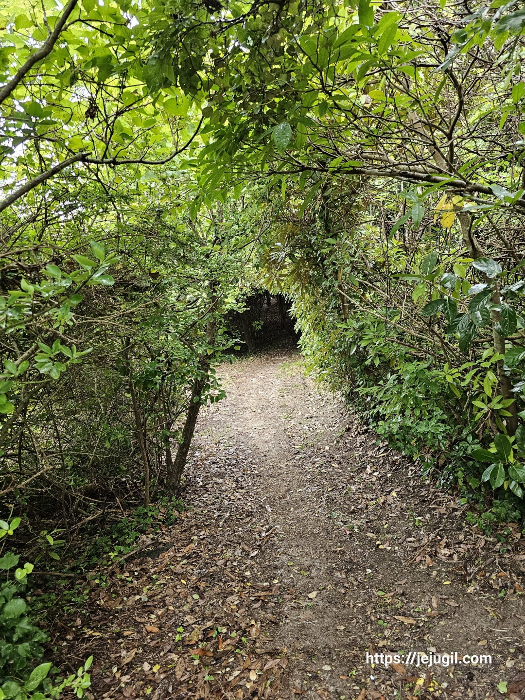 간세가 좁은 오솔길을 가리킨다. '어 오늘도 산이야?' 라는 생각을 했지만 잠시 걸어보니 산이라고 하기에는 너무너무 푹신푹신한 오솔길이었다. 물론 혼자 가기에는 살짝 무섭기도 하겠다 싶은 곳이지만 옛날 시골 숲길을 걷는 마음으로 화이팅을 외쳐 본다.