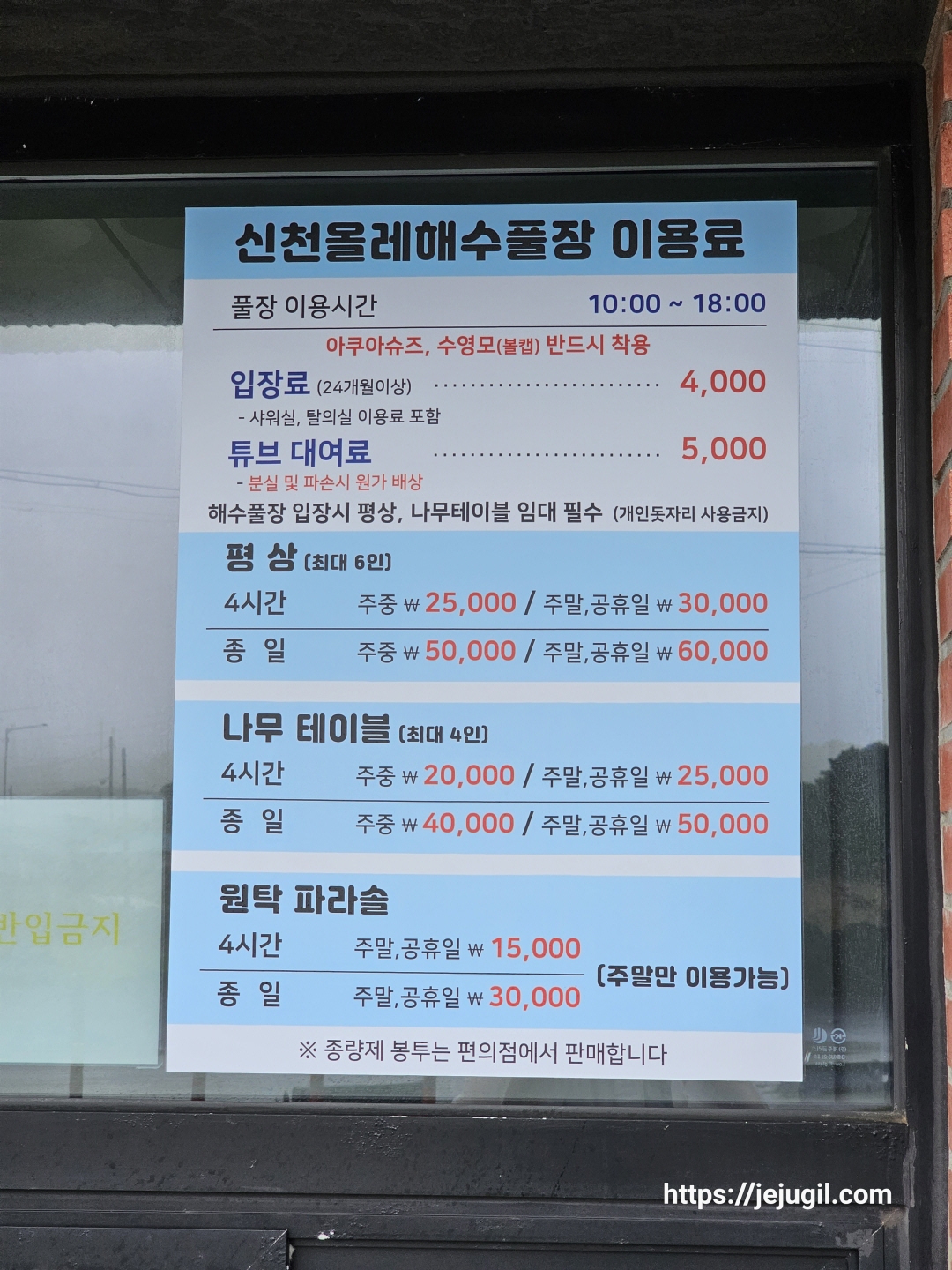 비가 쏟아지니 이용료따위는 눈에 들어오지도 않았지만 이용할 분들을 위해서 찰칵!