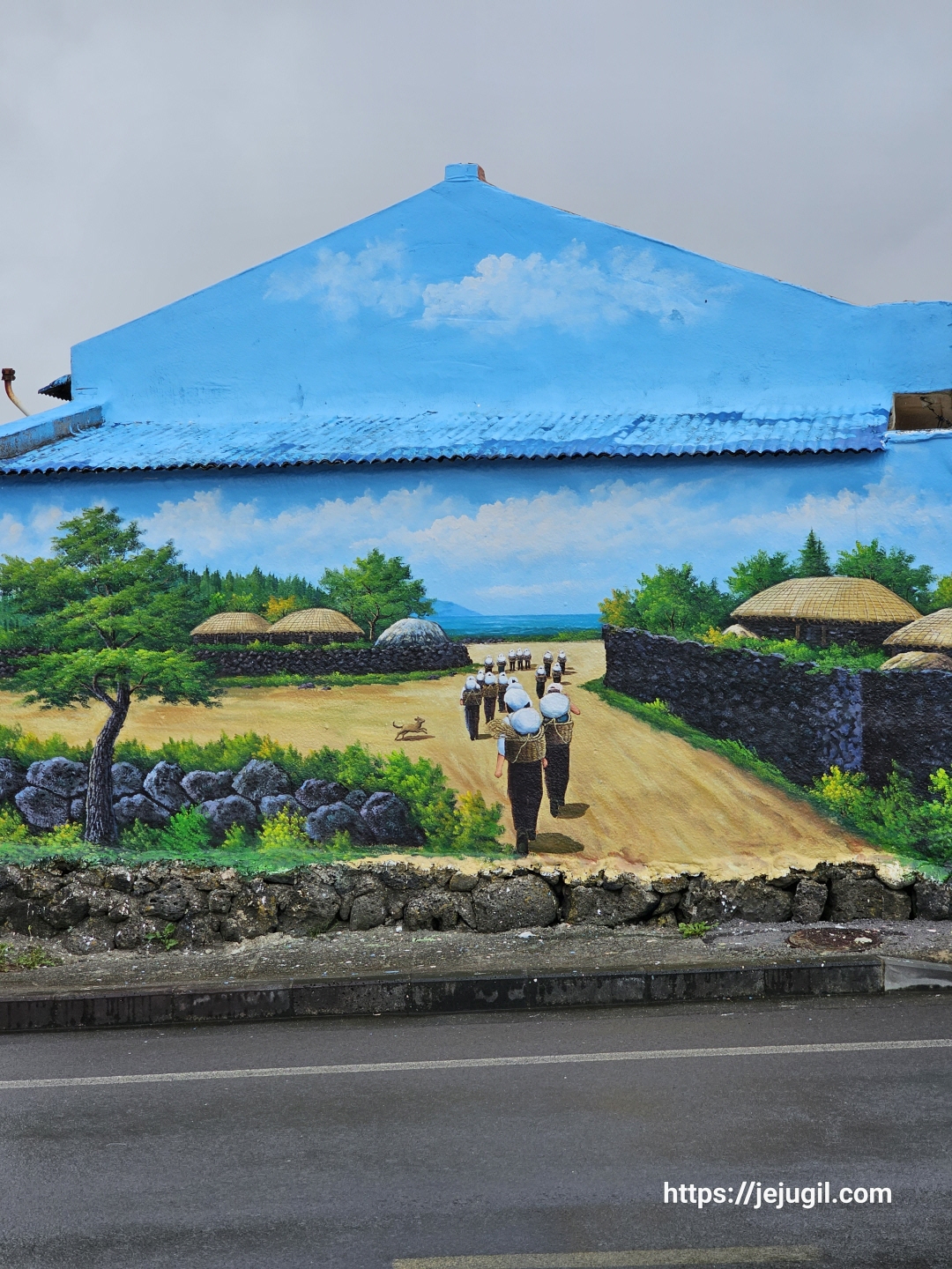신천리 마을에서 볼 수 있는 예쁜 벽화들, 우산을 펼쳐 들고 찍느라 한참을 낑낑거렸다. 그리고는 금새 우산으로는 막기 힘든 소나기가 뿌려졌다.