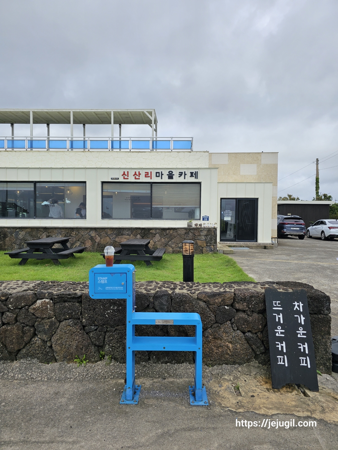 드디어 만나 중간간세! 처음간세도 반갑고 마지막 간세도 반갑지만 이상하게 중간간세가 가장 반갑게 느껴진다. 이곳에는 신산리 마을까페가 있는데 신산리를 찾아준 여행자와 이들을 반기는 마을 주민들이 함께하는 공간이다. 마을회관 일부를 개조해 카페로 만들어 마을에서 직접 운영하는 카페이다. 아오오를 들리지 않았다면 반드시 들렀을 곳인데 조금은 아쉬웠다. 가끔 맞은편 바닷가에 돌고래도 출몰한다고 하니 꼭 들러보면 좋겠다.