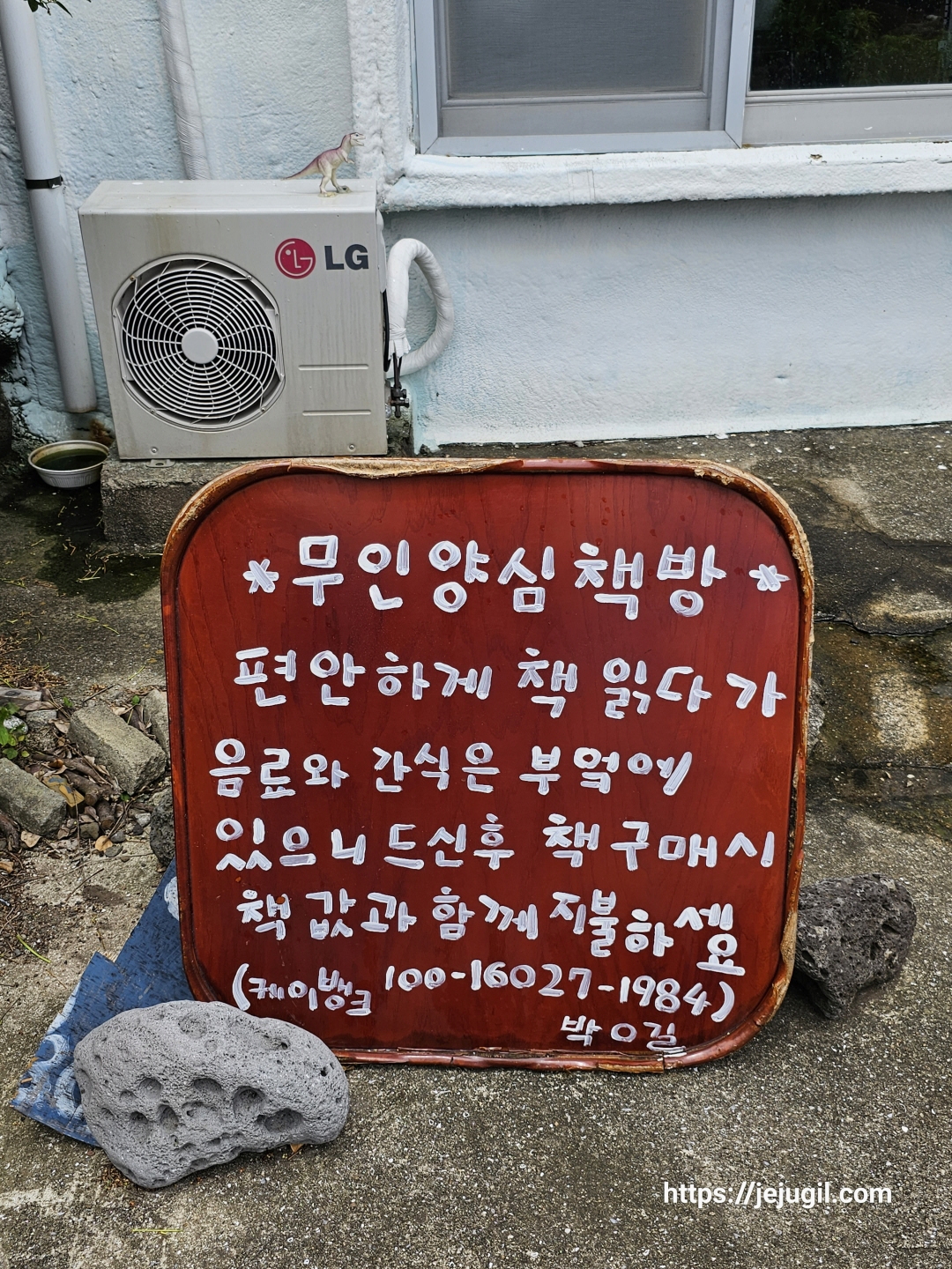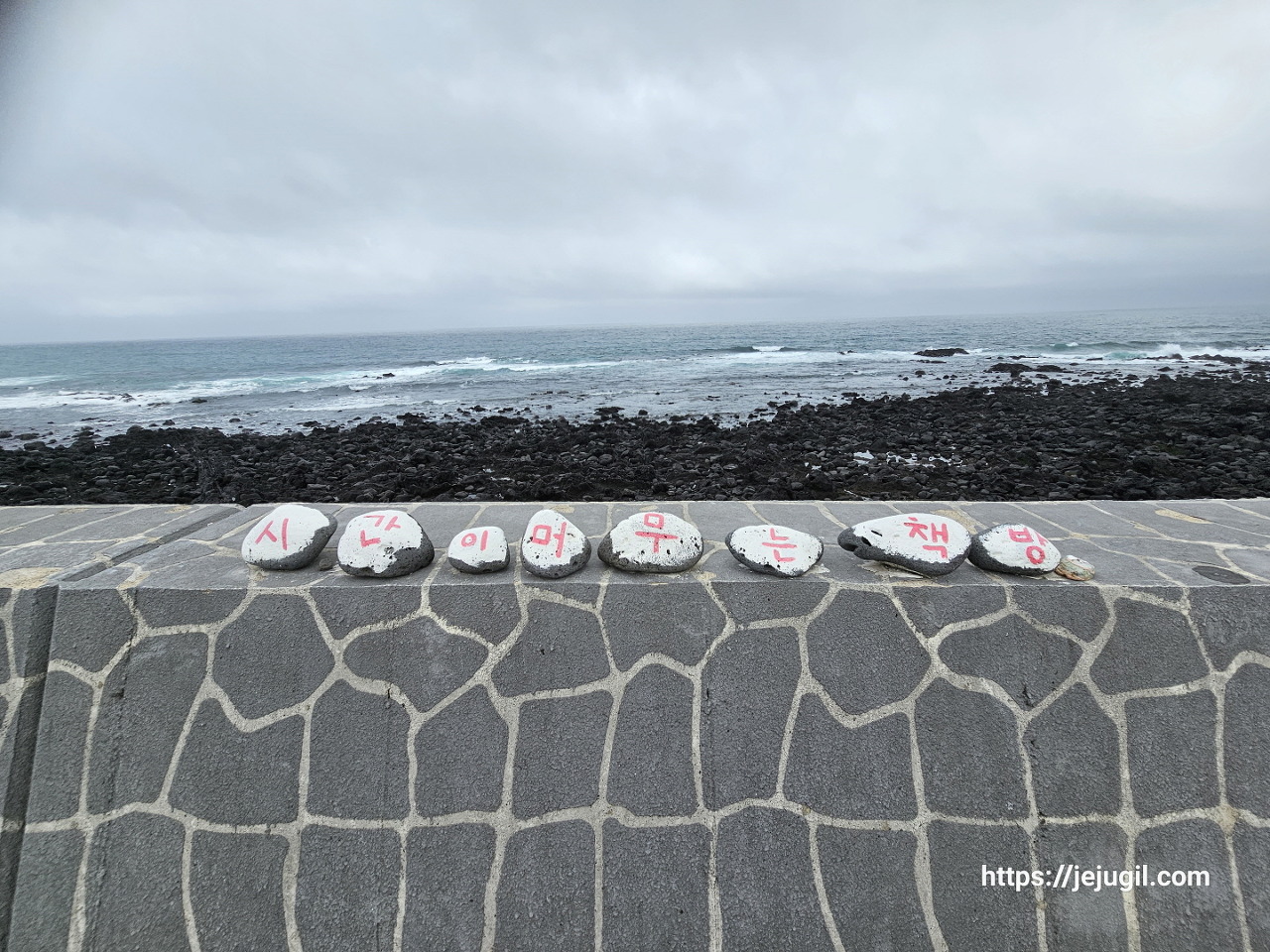 도로 건너편에는 '시간이 머무는 책방' 이라는 예쁜 돌들이 가지런히 놓여 있었다.