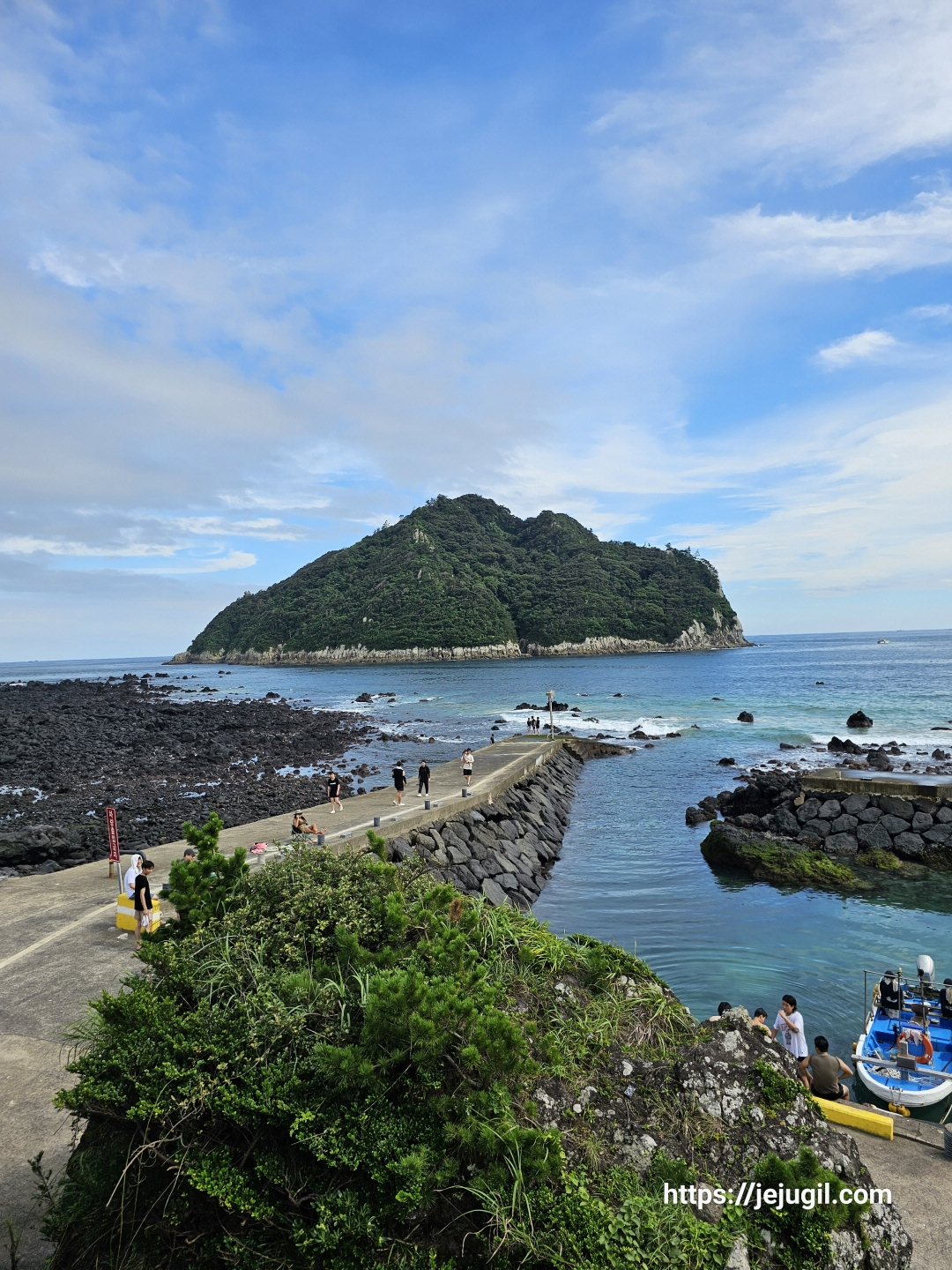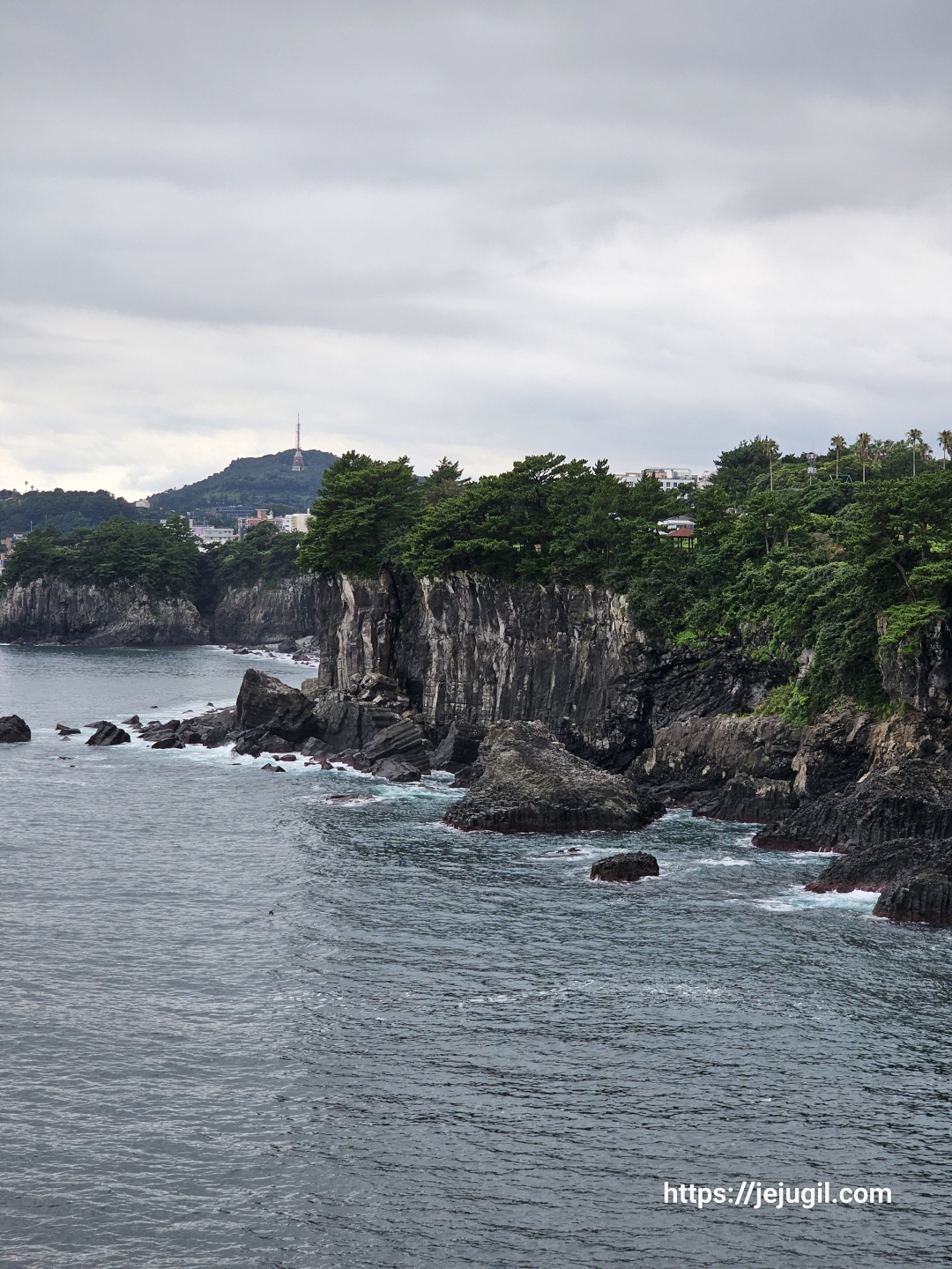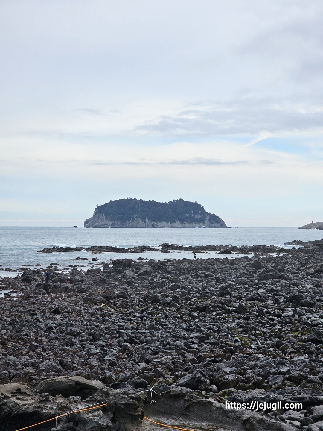 조금 걸으니 늘 멀리서만 보이던 '섶섬' 와~ 왼쪽에는 기암괴석들이 있고 주상절리가 멀리서도 아름답게 보인다.