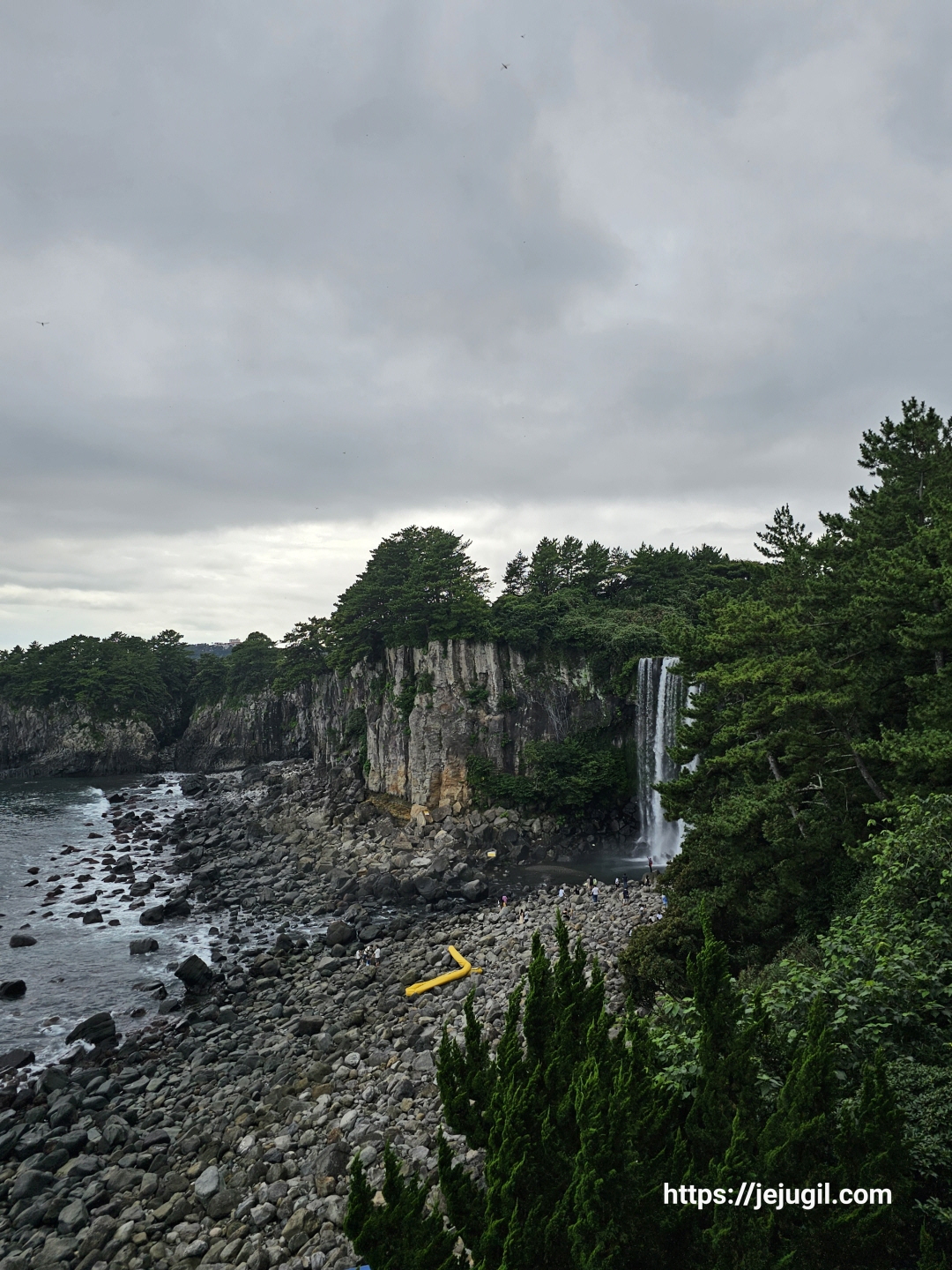 캬하!!! 와우!!! 시~~~원하다!!! 정방폭포는 폭포수가 수직절벽에서 곧바로 바다로 떨어지는 동양 유일의 폭포다. 높이가 23미터고 폭이 10미터다. 말이 필요없다.