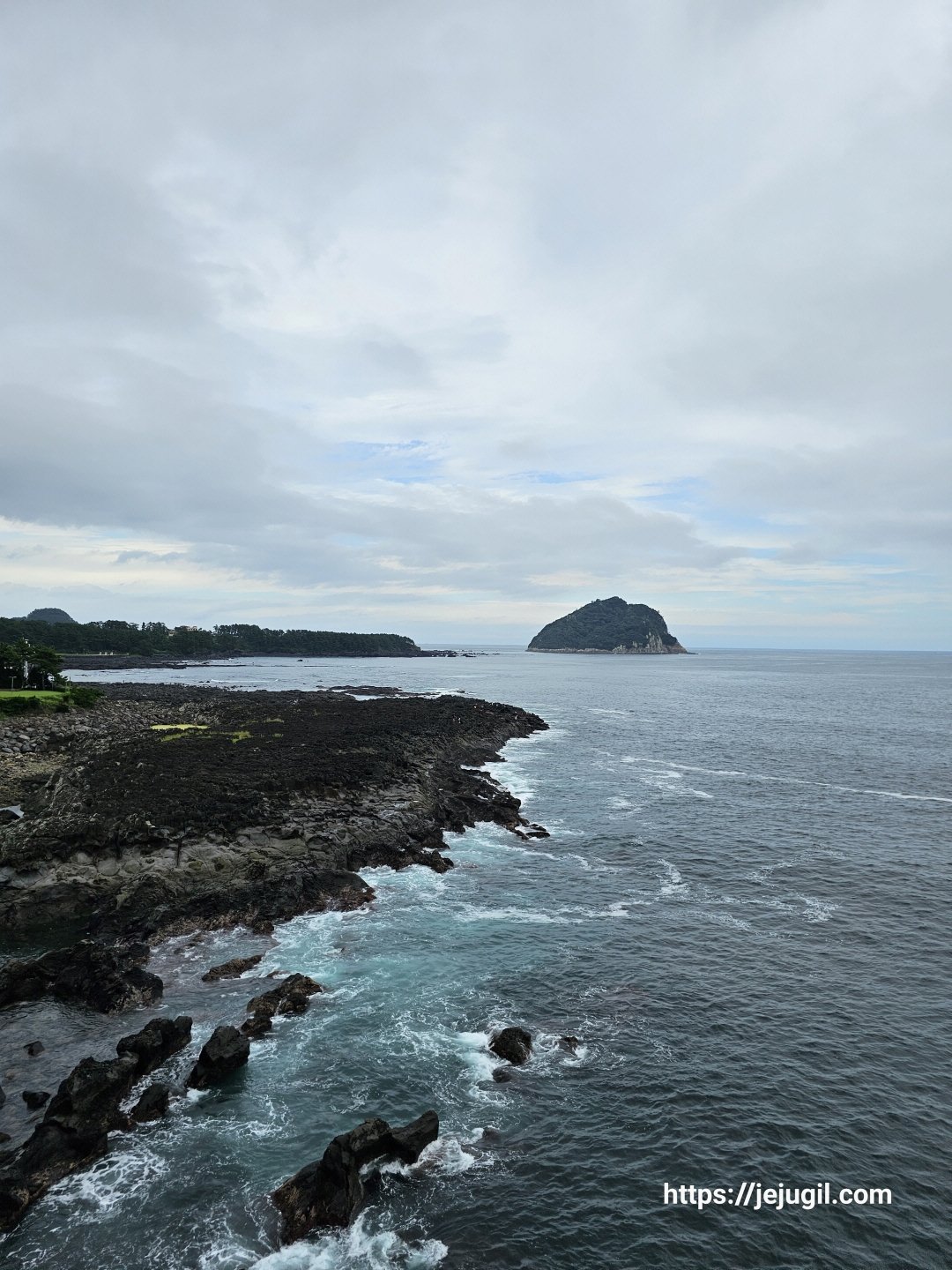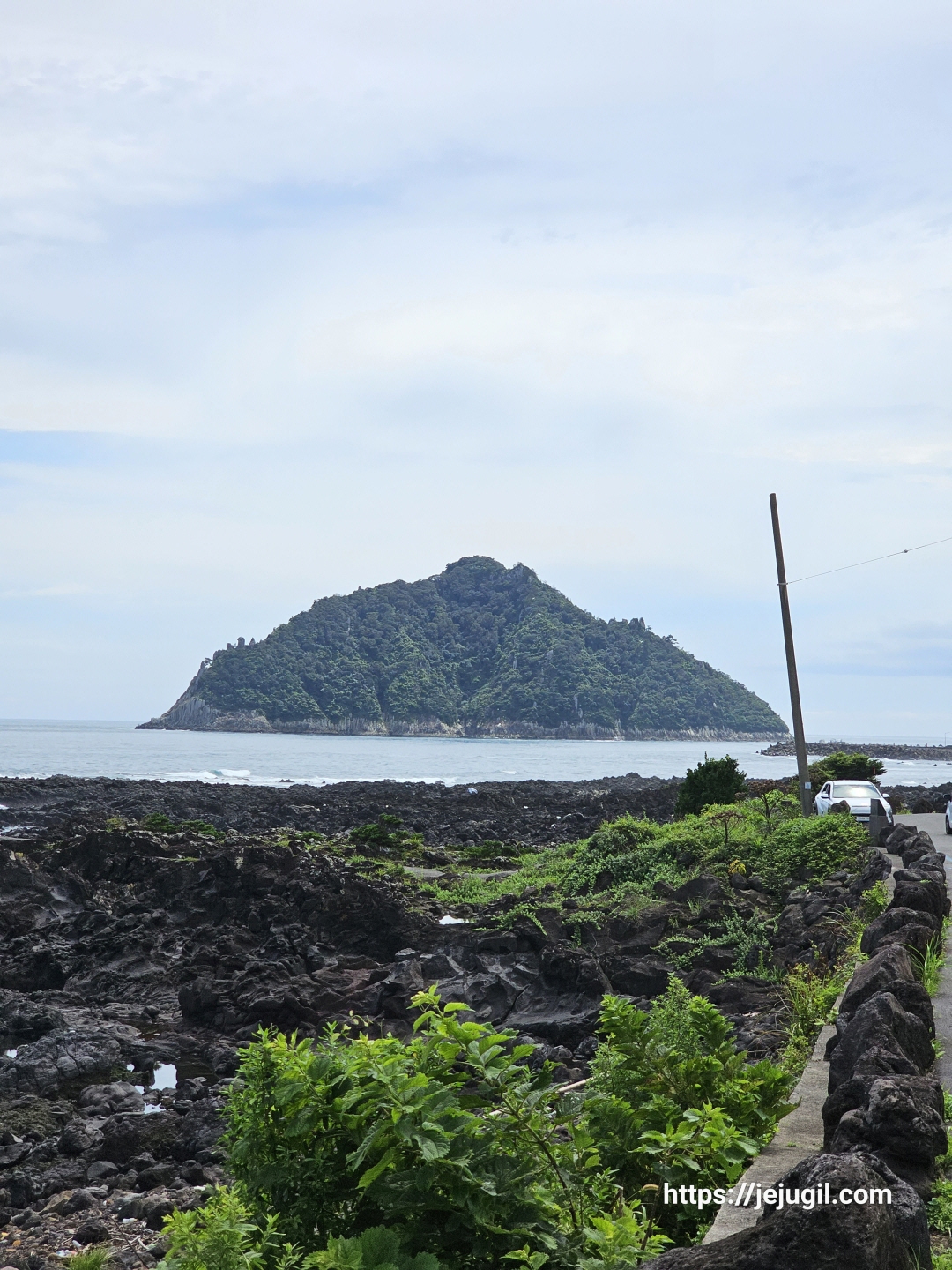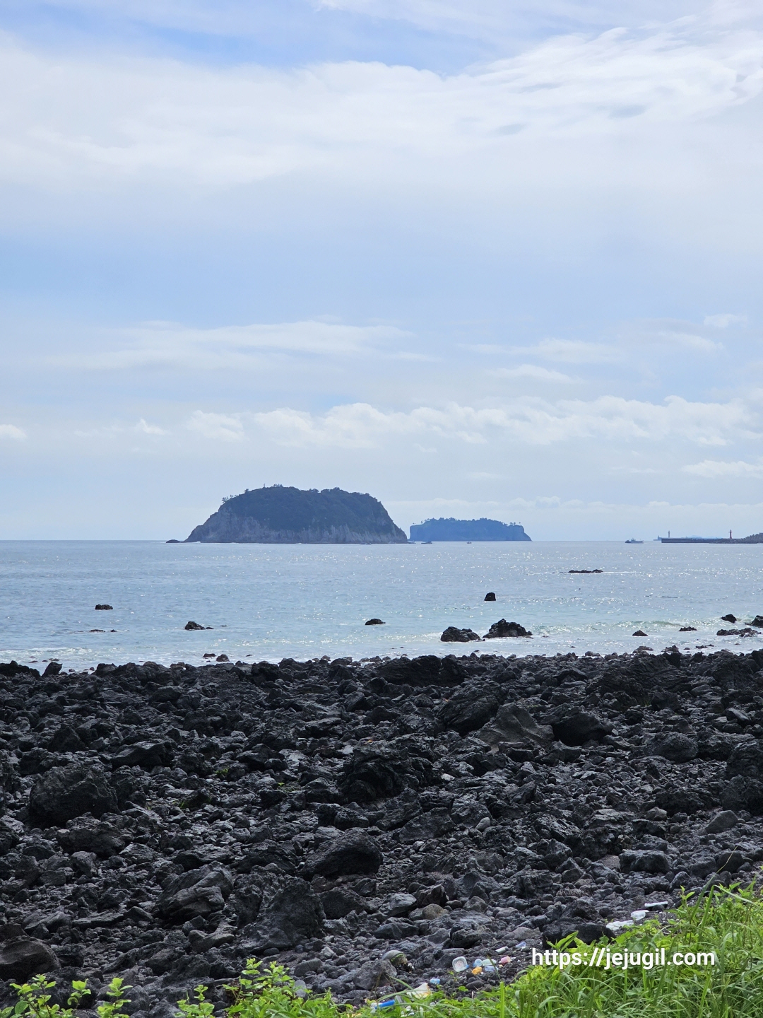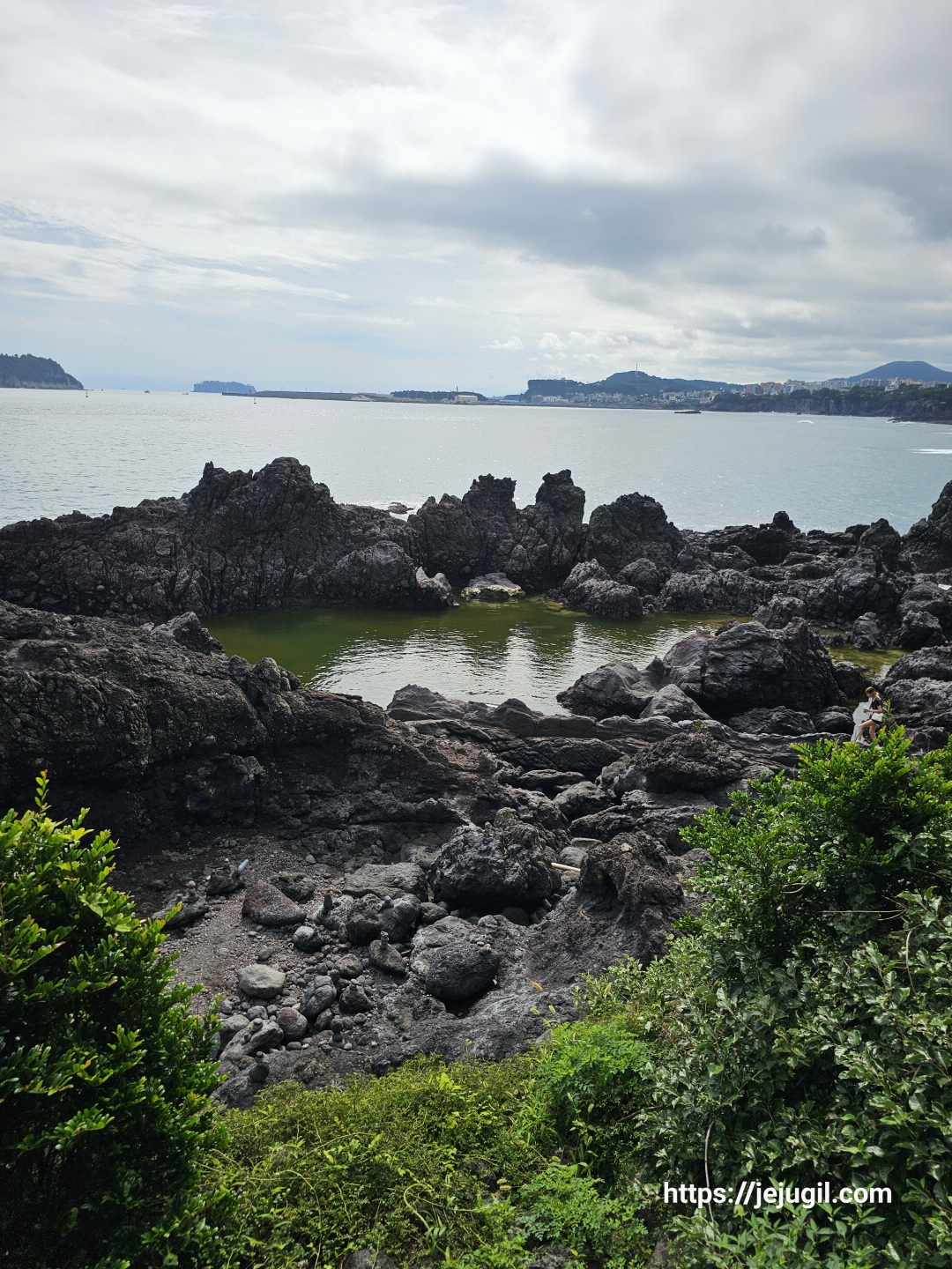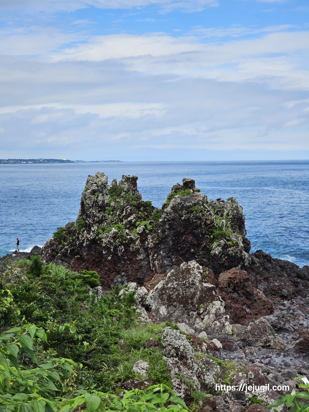 조금 걸으니 늘 멀리서만 보이던 '섶섬' 와~ 왼쪽에는 기암괴석들이 있고 주상절리가 멀리서도 아름답게 보인다.