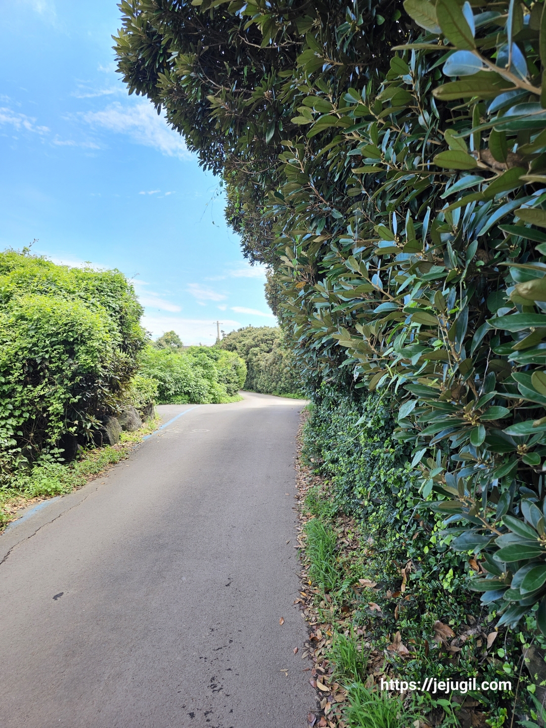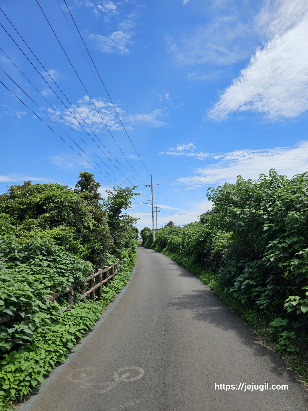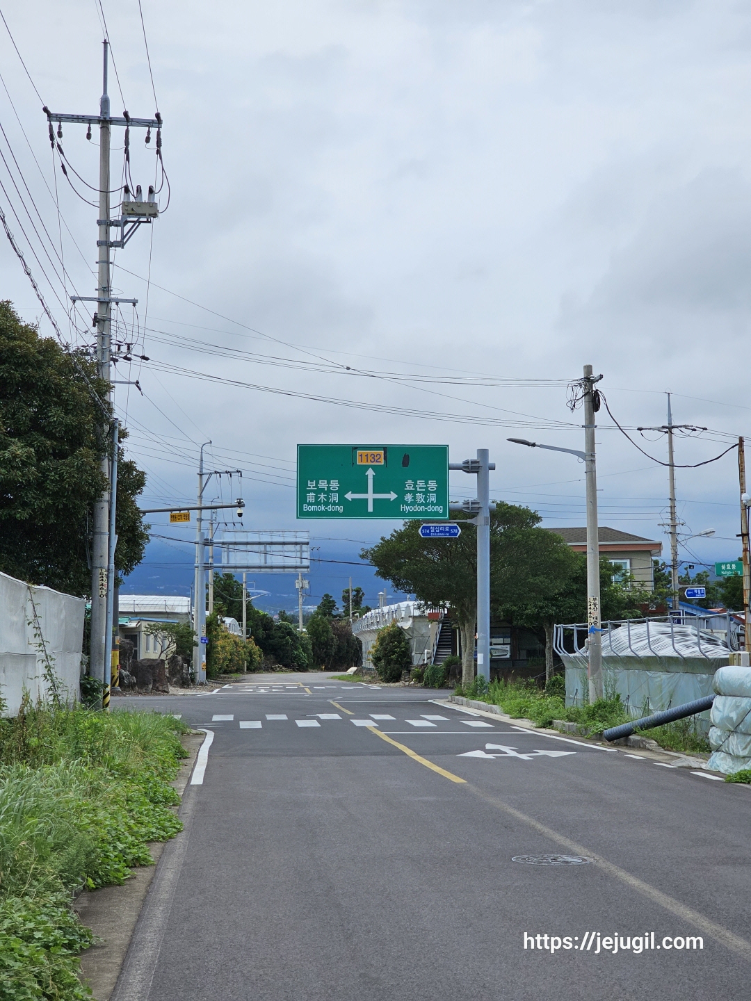 효돈동과 보목동의 경계선쯤 되는 도로인 듯 하다. 이때만 해도 '제지기오름'을 오를꺼라고는 생각도 하지 않고 있었다.