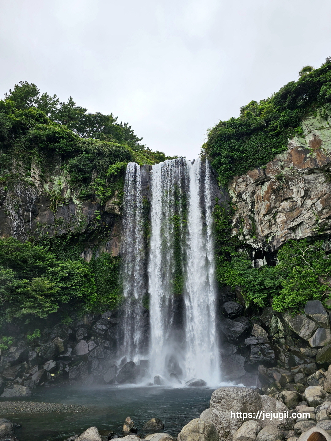 캬하!!! 와우!!! 시~~~원하다!!! 정방폭포는 폭포수가 수직절벽에서 곧바로 바다로 떨어지는 동양 유일의 폭포다. 높이가 23미터고 폭이 10미터다. 말이 필요없다.