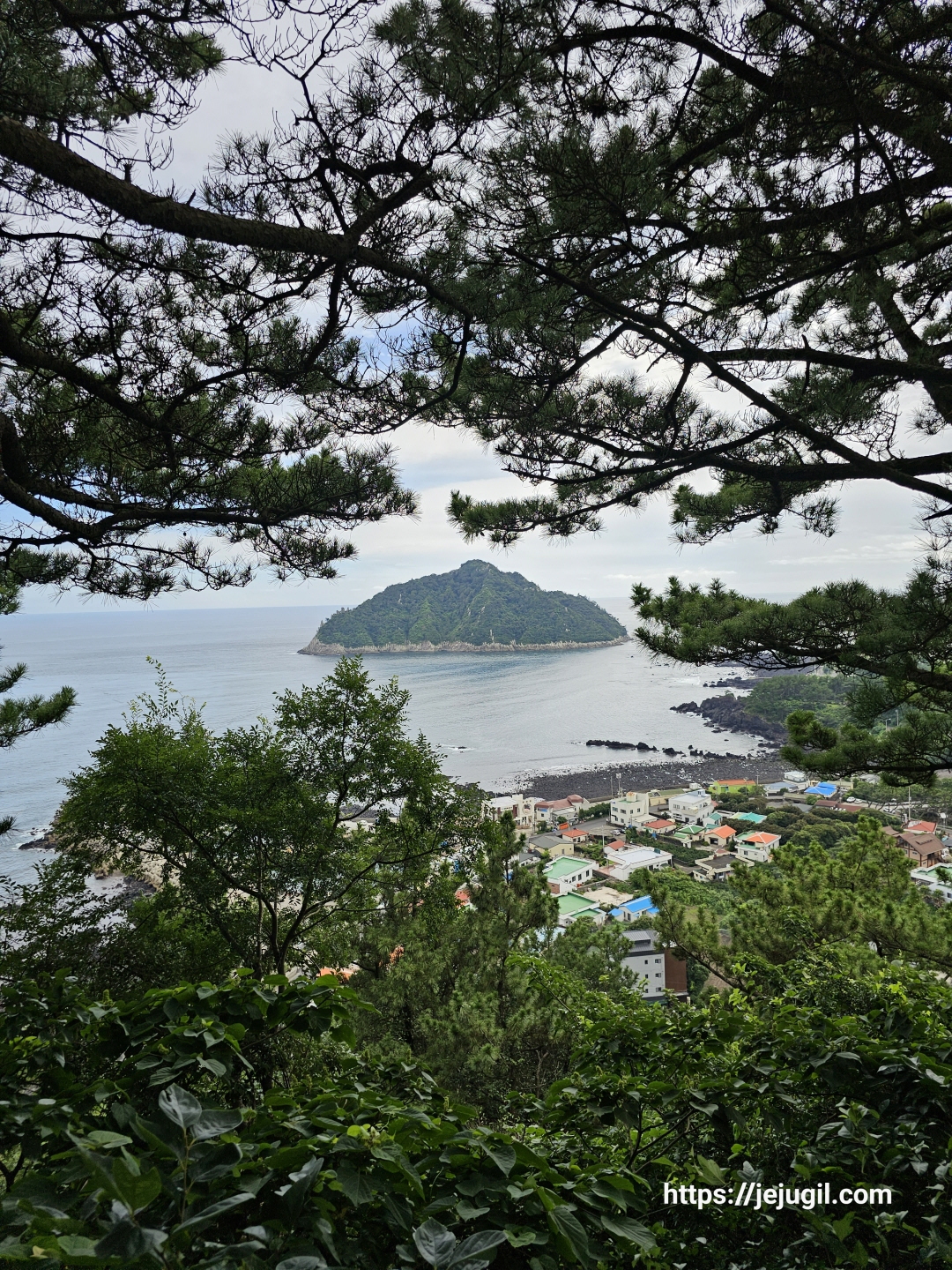 섶섬과 함께 보이는 보목포구. 소담하고 아담했다.