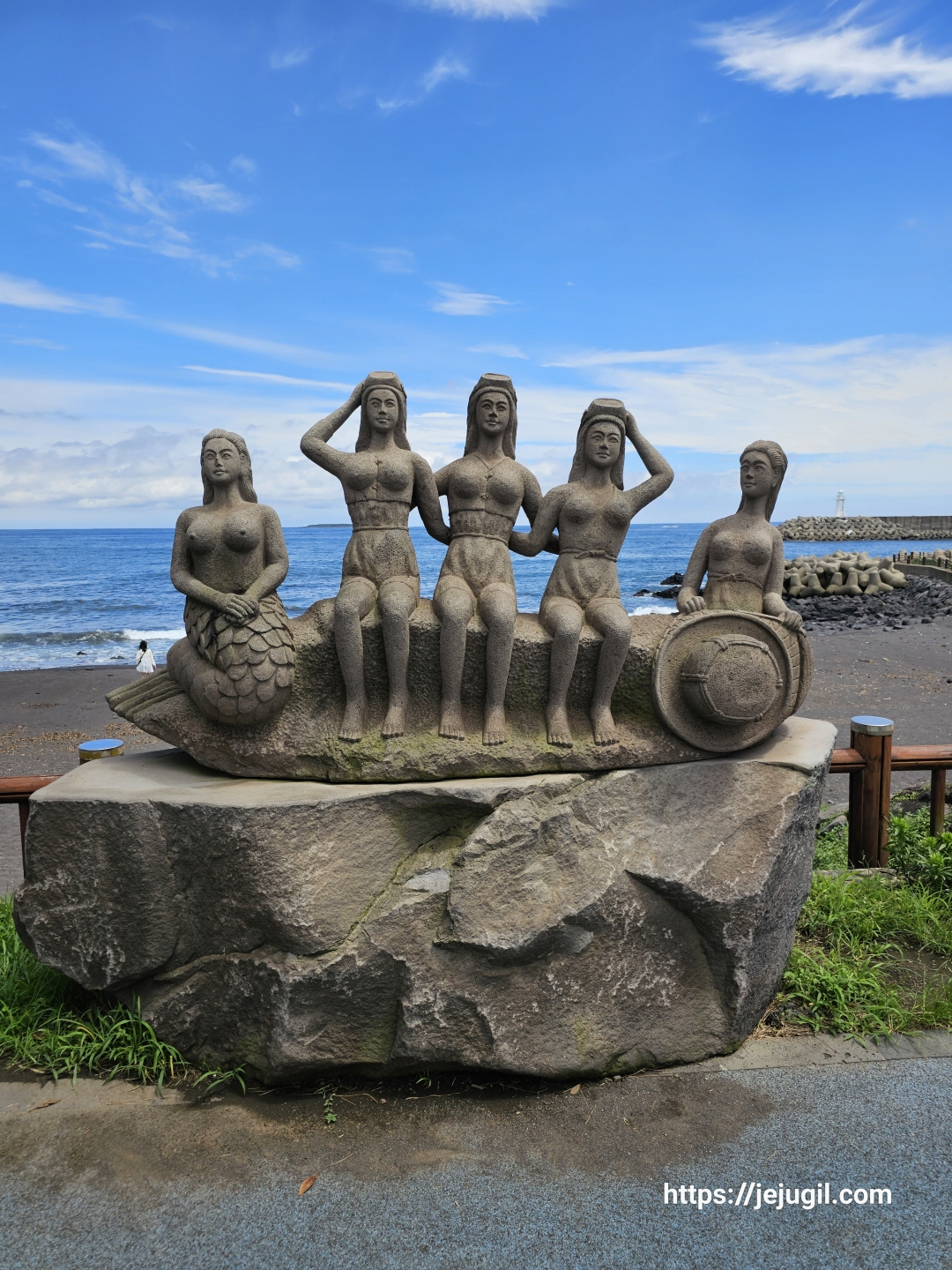 해변가에 해녀와 인어 조형물이 보이길래 한 컷! 푸른 하늘은 봐도봐도 즐겁다.