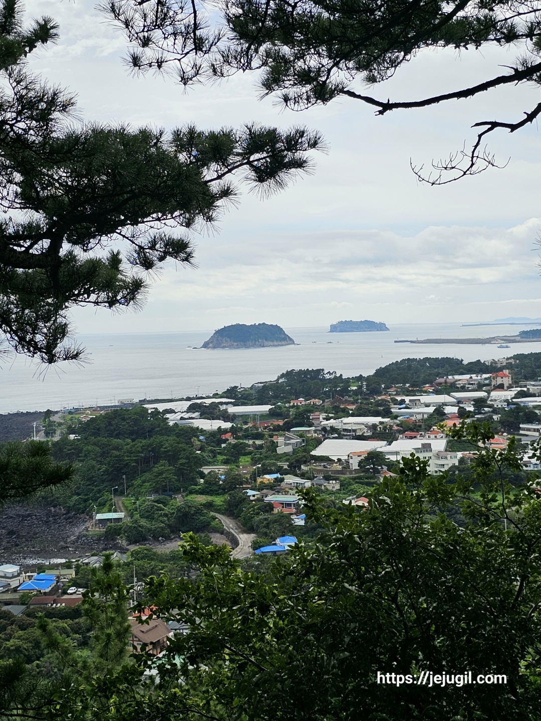 그리고 문섬과 범섬! 아름다운 풍경이 헉헉거리며 올라왔다는 것을 잊게했다. 제지기 오름은 보목동 일대에 걸쳐 있다. 오름 남쪽 중턱에 굴이 있는데 그곳에 절과 절을 지키는 사람인 절지기가 있었다 하여 절오름, 절지기오름으로 불리다가 와전되어 제재기오름이라 불리게 되었다는 설이 있다.
