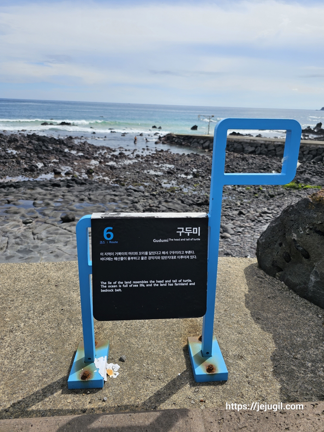 한참을 걷다보니 '구두미포구'에 다다랐다. 이곳 보목동의 지형이 거북이의 머리를 닮았다고 해서 '구두미'라고 부른다.