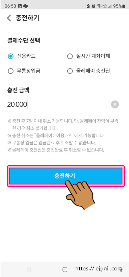 다시 충전하기 버튼을 클릭합니다.