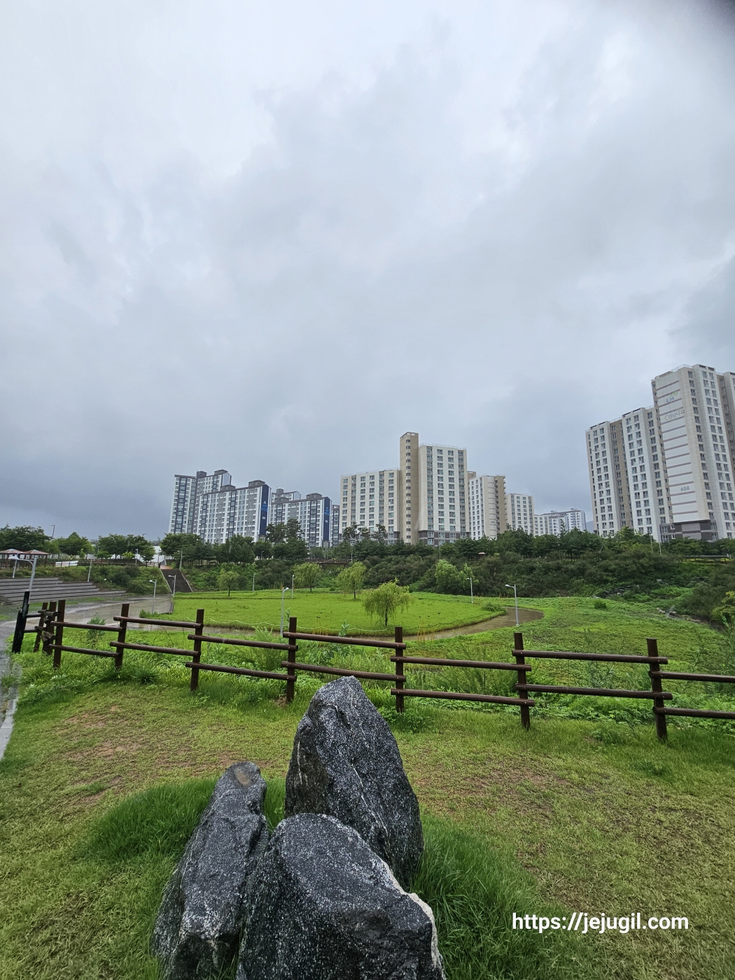 이노밸리 끝자락에서 만난 '신지저수지' 비오는 소리가 너무 아름다웠다. 신지저수지는 혁시도시로 들어가는 길목에 있고 혁신도시의 다른 저수지들 보다 규모가 꽤 컸다. 저수지를 돌며 산책하기에 너무 좋아 보였다.